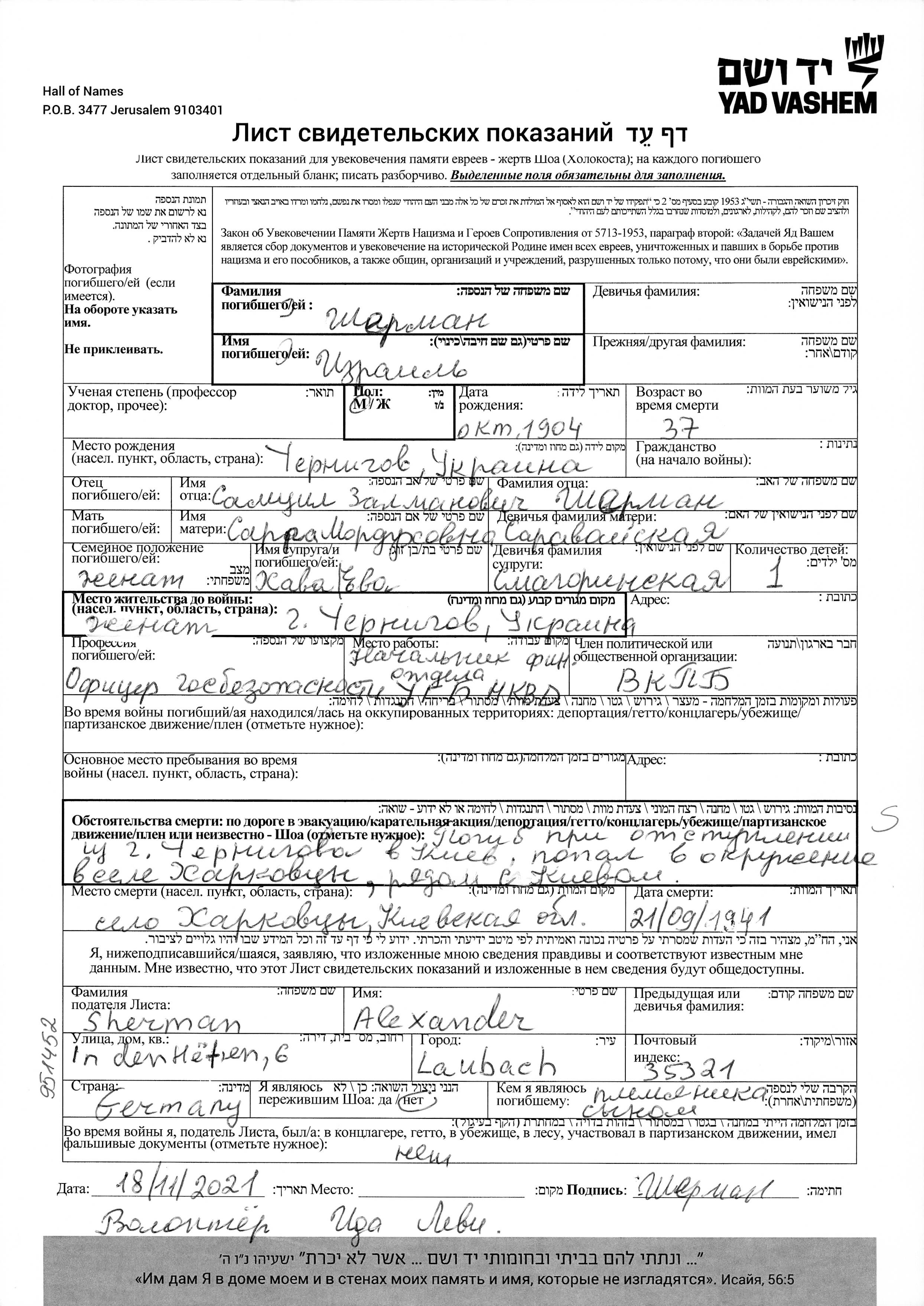 Search by last name of the submitter of the Page of Testimony, including diminutives or nicknames