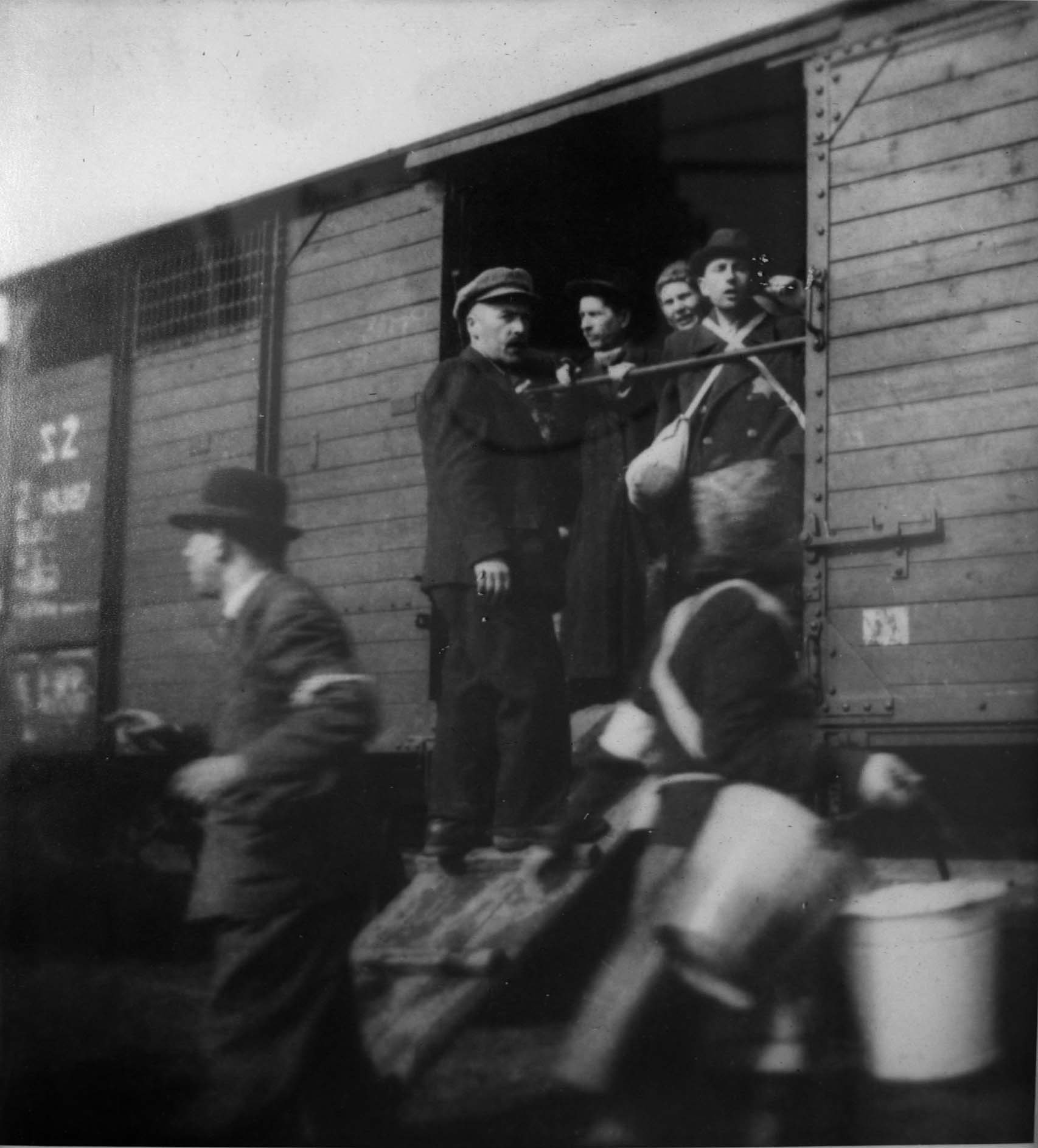 Bardejov, Czechoslovakia, Jews boarding a deportation train on their way to Majdanek extermination camp, 1942.
