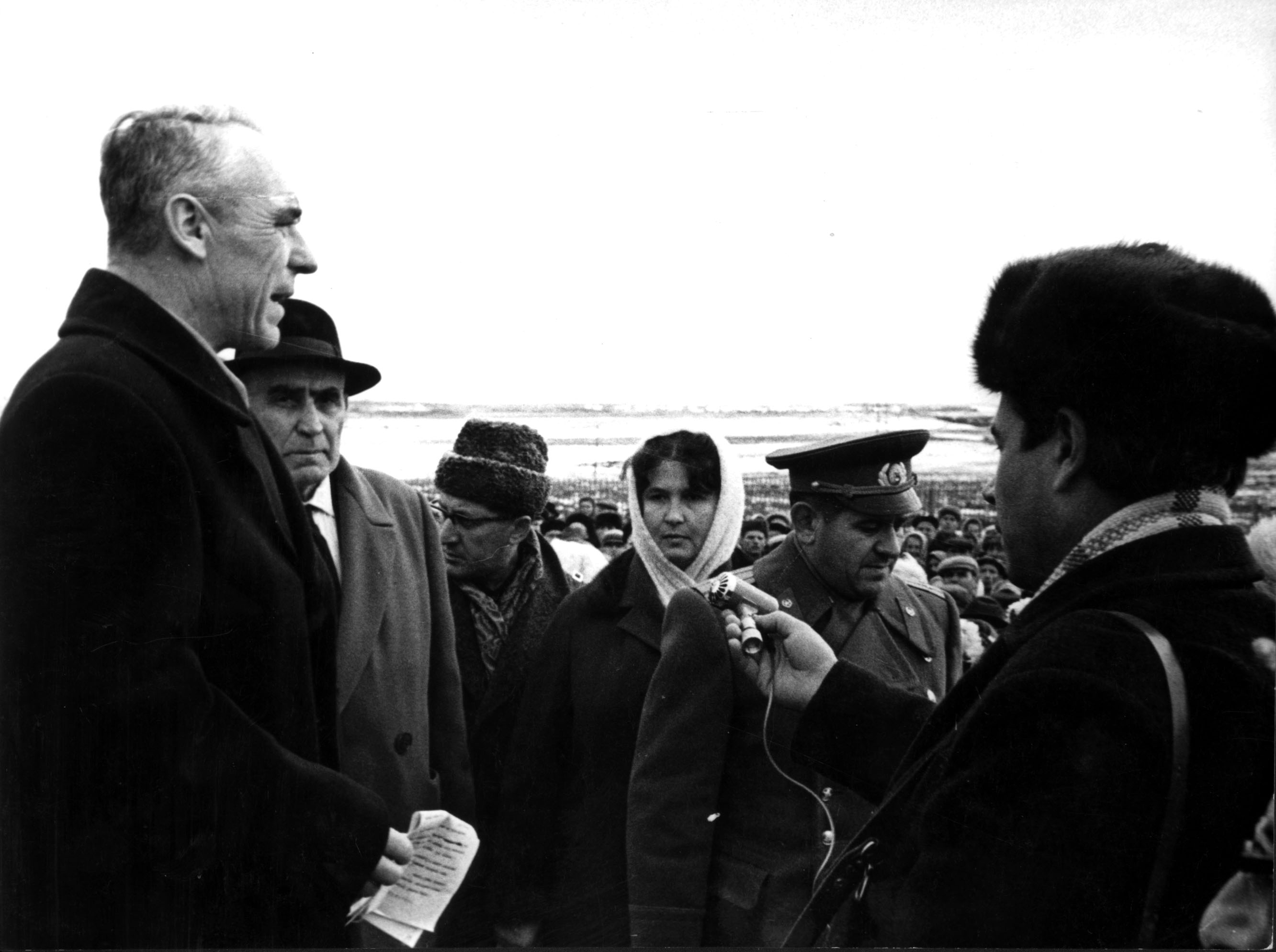 Rudnya, USSR, A photograph of a man speaking at the memorial site in memory of the 1,200 Jews of the village who were murdered in 1941, October 1965.