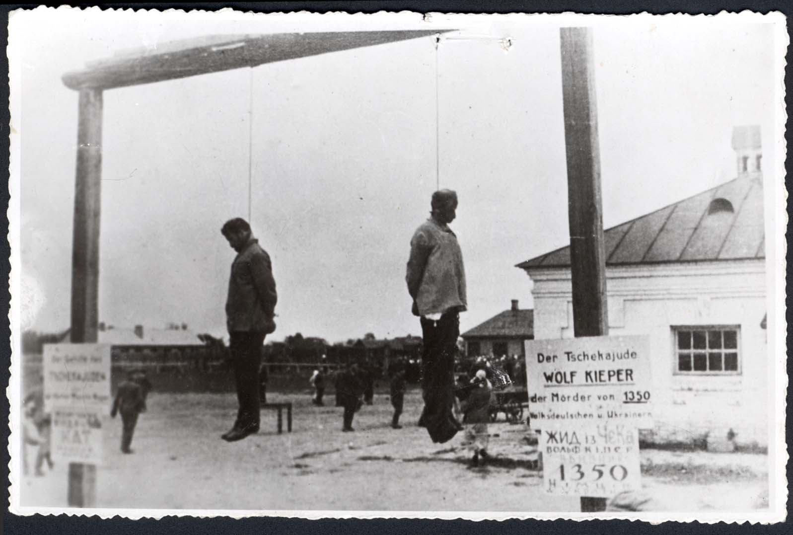 Zhitomir, Ukraine, 7/8/1941, Public hanging of Jews accused of connections to the Soviet secret police.