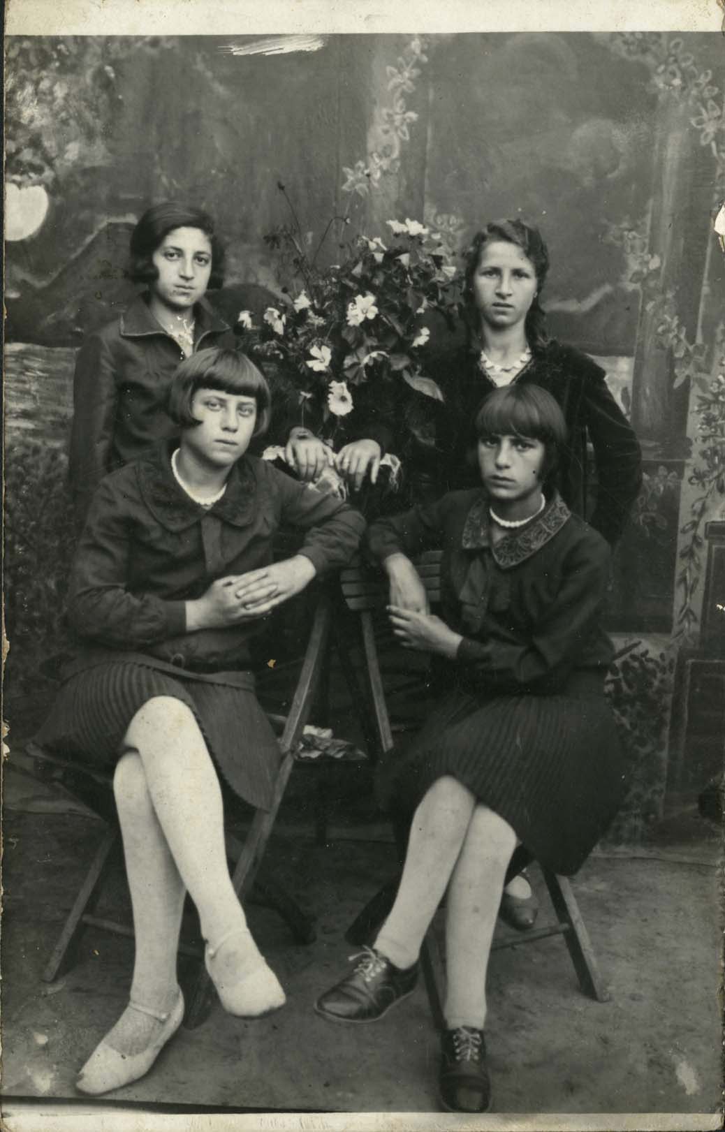 Kamieniec Litewski, Poland, Dina Vishengrad (standing at left), with girlfriends, 1928.