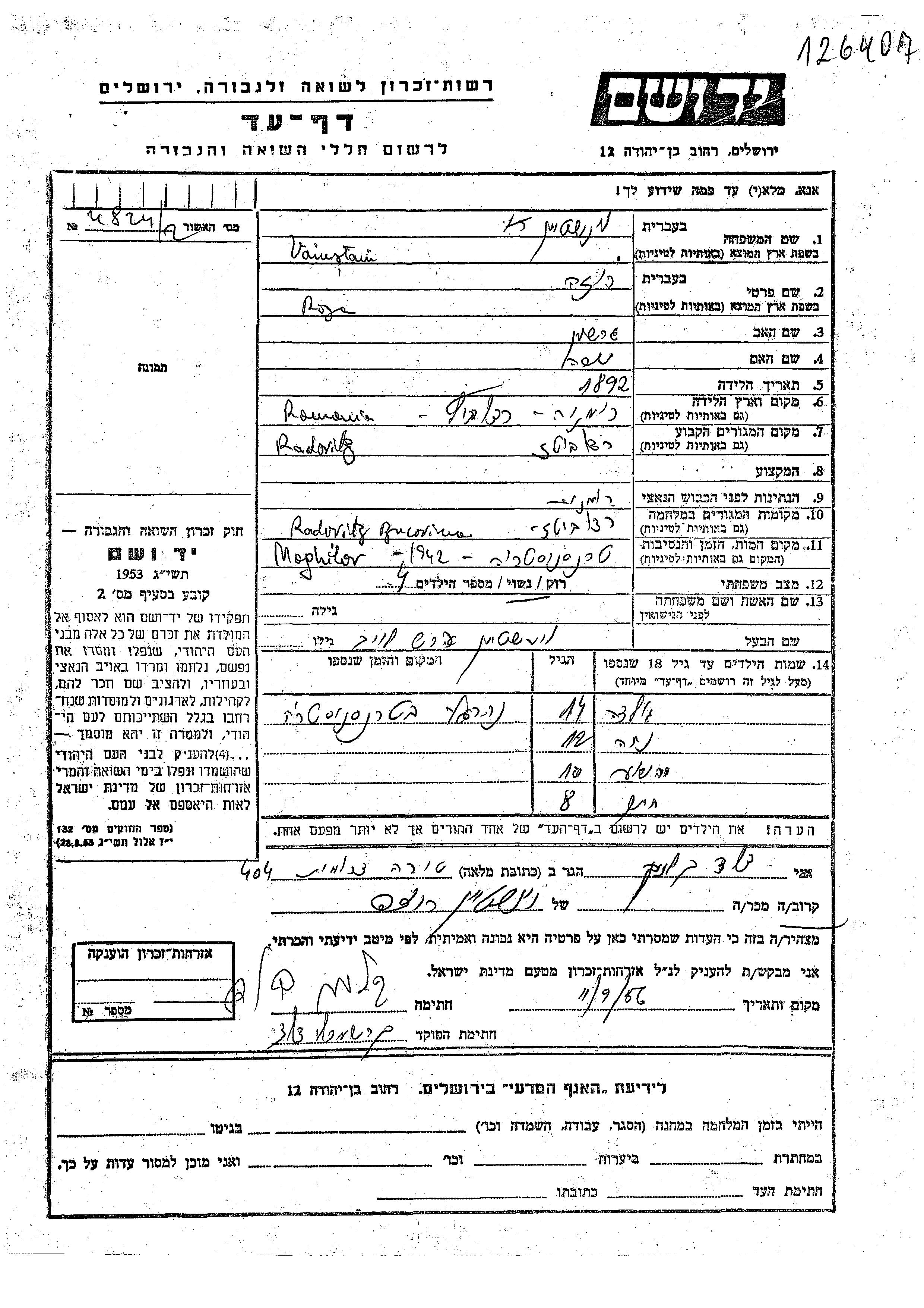 Vainstein Roza 1892 Radovits, Romania Page of Testimony