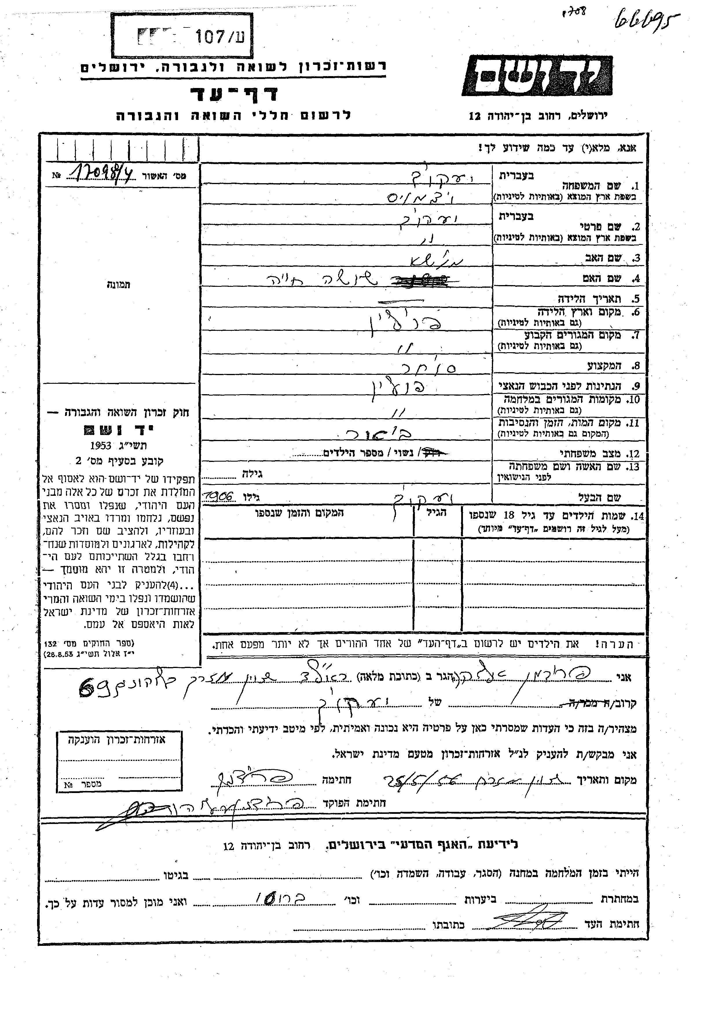 Yaakov Vitzmus was born in Poland, 1906 to Musha and Shosha Khaia. He was a merchant and married. Prior to WWII he lived in Poland. During the war he was in Poland. Yaakov was murdered in the Shoah. Place of death: Camp, Poland.