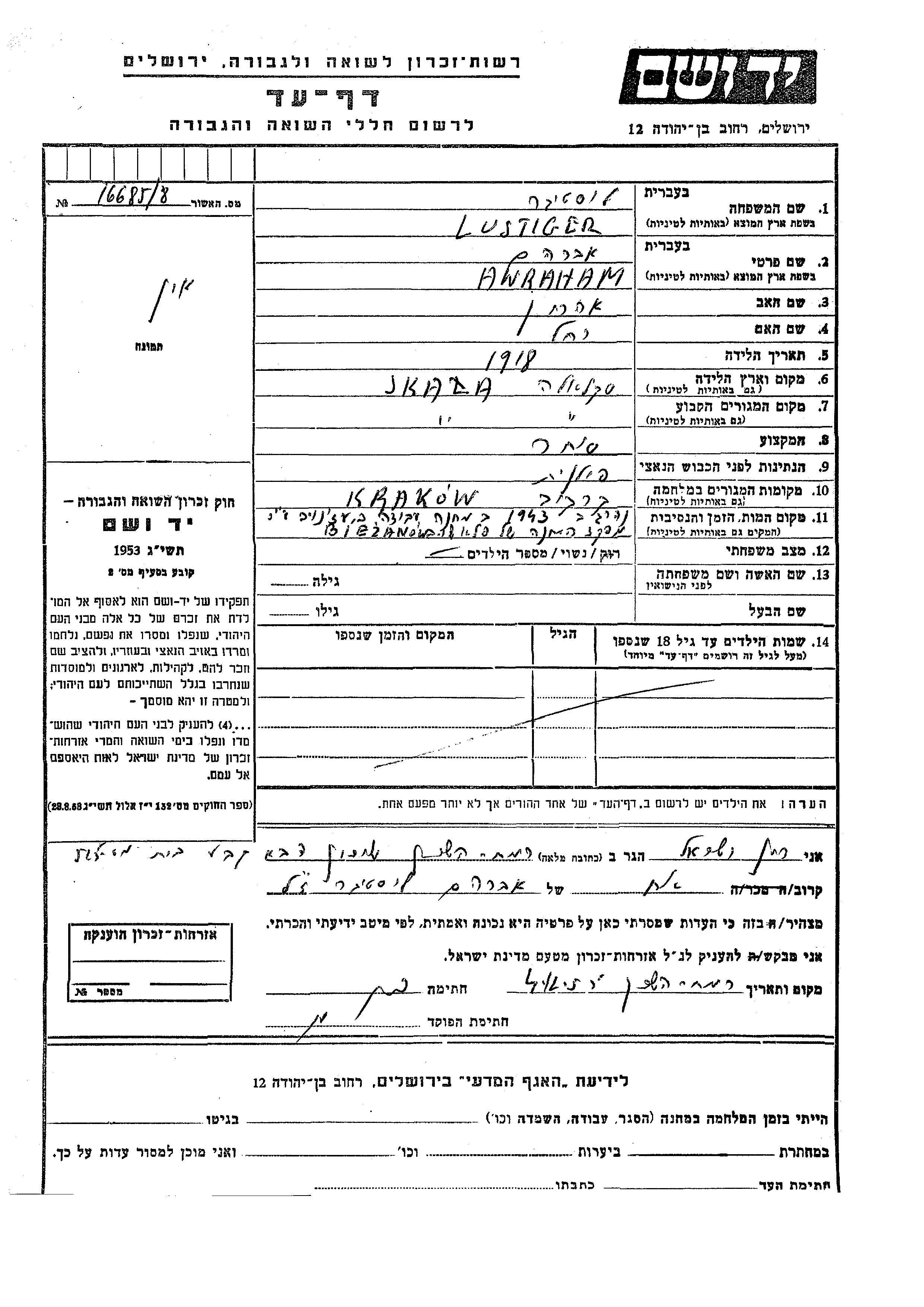 Yad Vashem - Pages of Testimony Names Memorial Collection