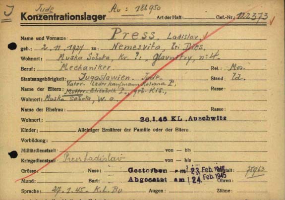 Press Ladislav 1927 Murska Sobota, Yugoslavia List of murdered Jews from Yugoslavia