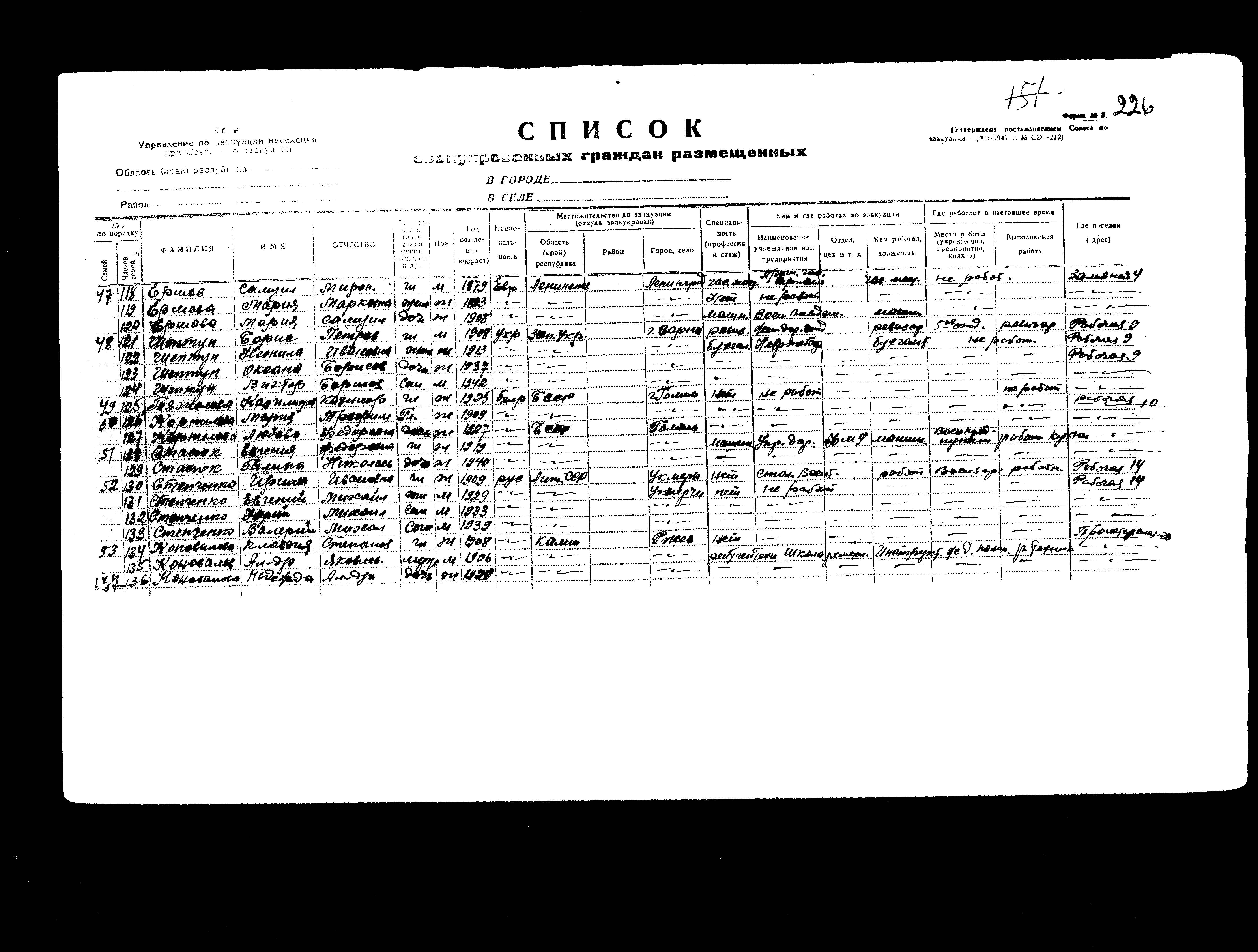 Was Registered Following the Evacuation/ in the Interior of the Soviet Union