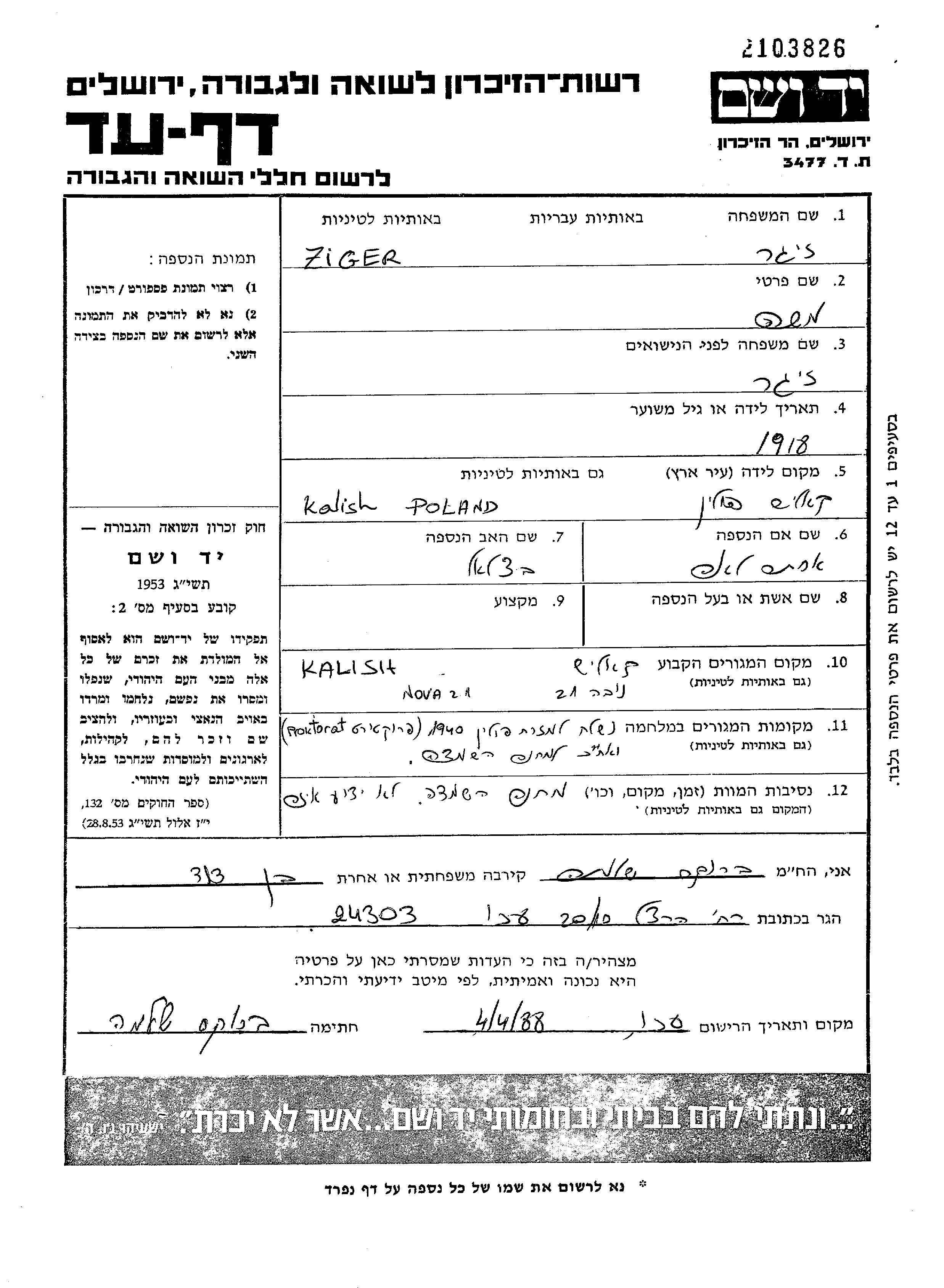 Ziger Moshe Kalisz, Poland Page of Testimony