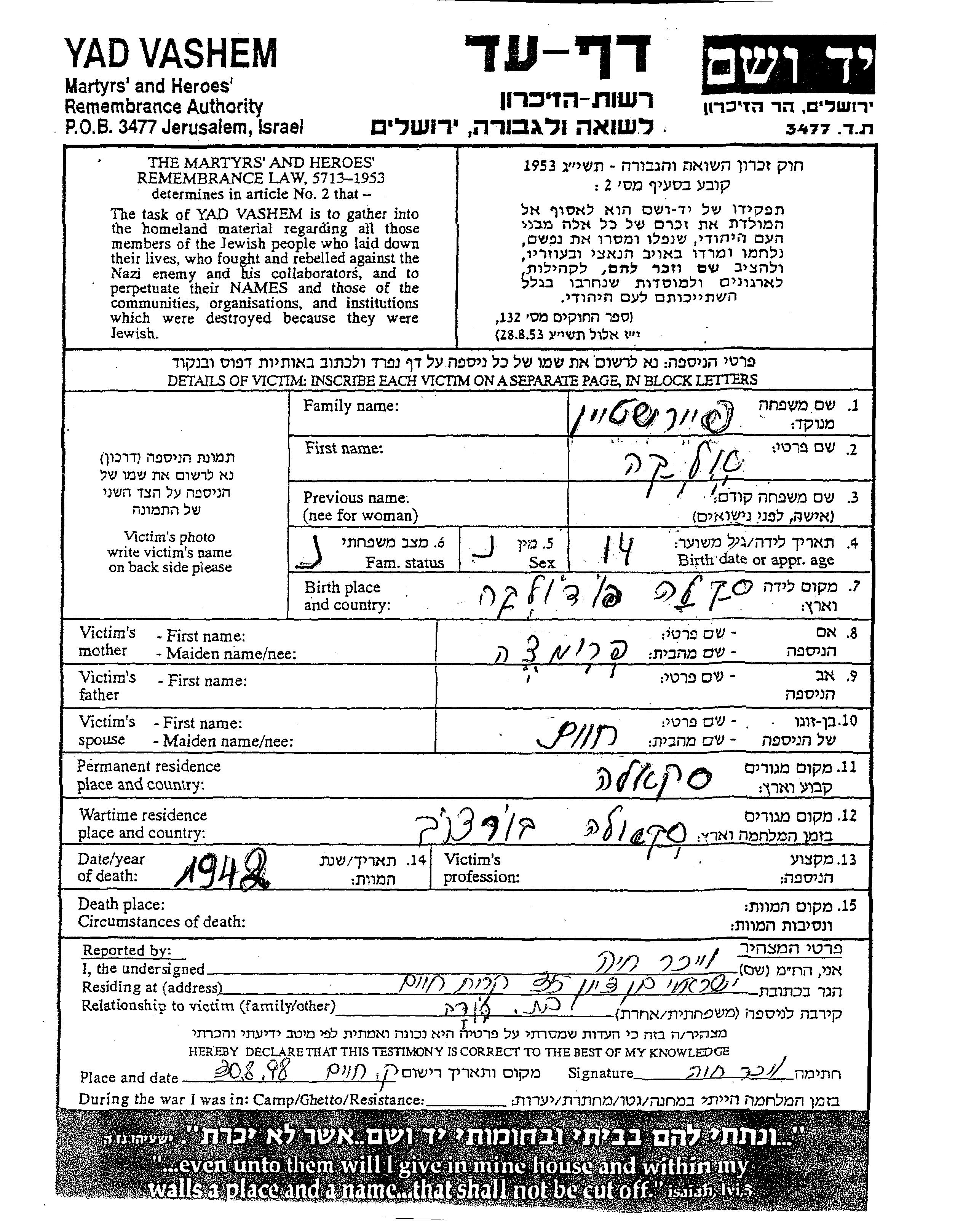 | Faiershtein | Elka | 1914 | Skala Podolskaya, Poland | Page of Testimony |