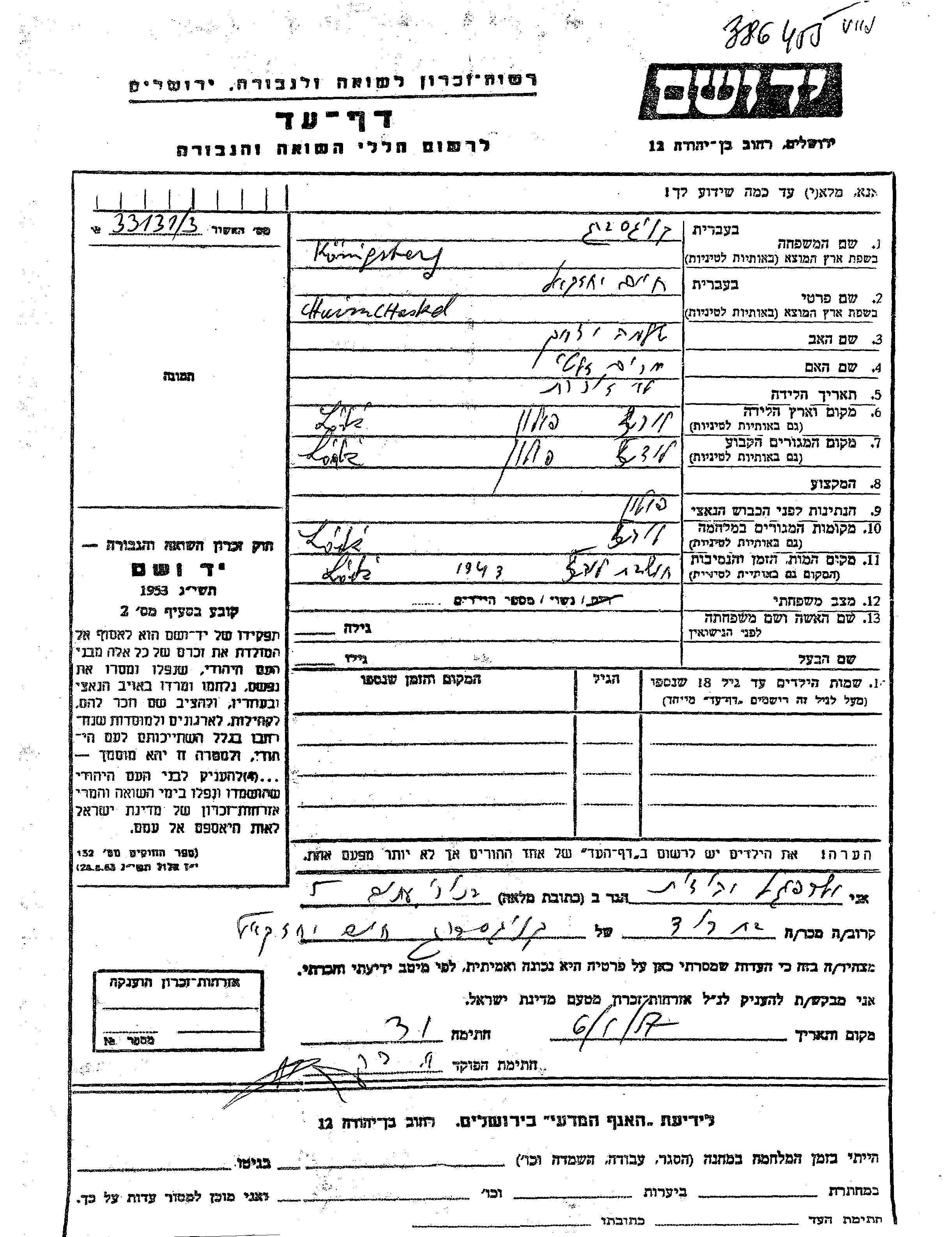 Haim Chaskel was murdered in the Shoah. Place of death: Lodz, Poland, 1943.