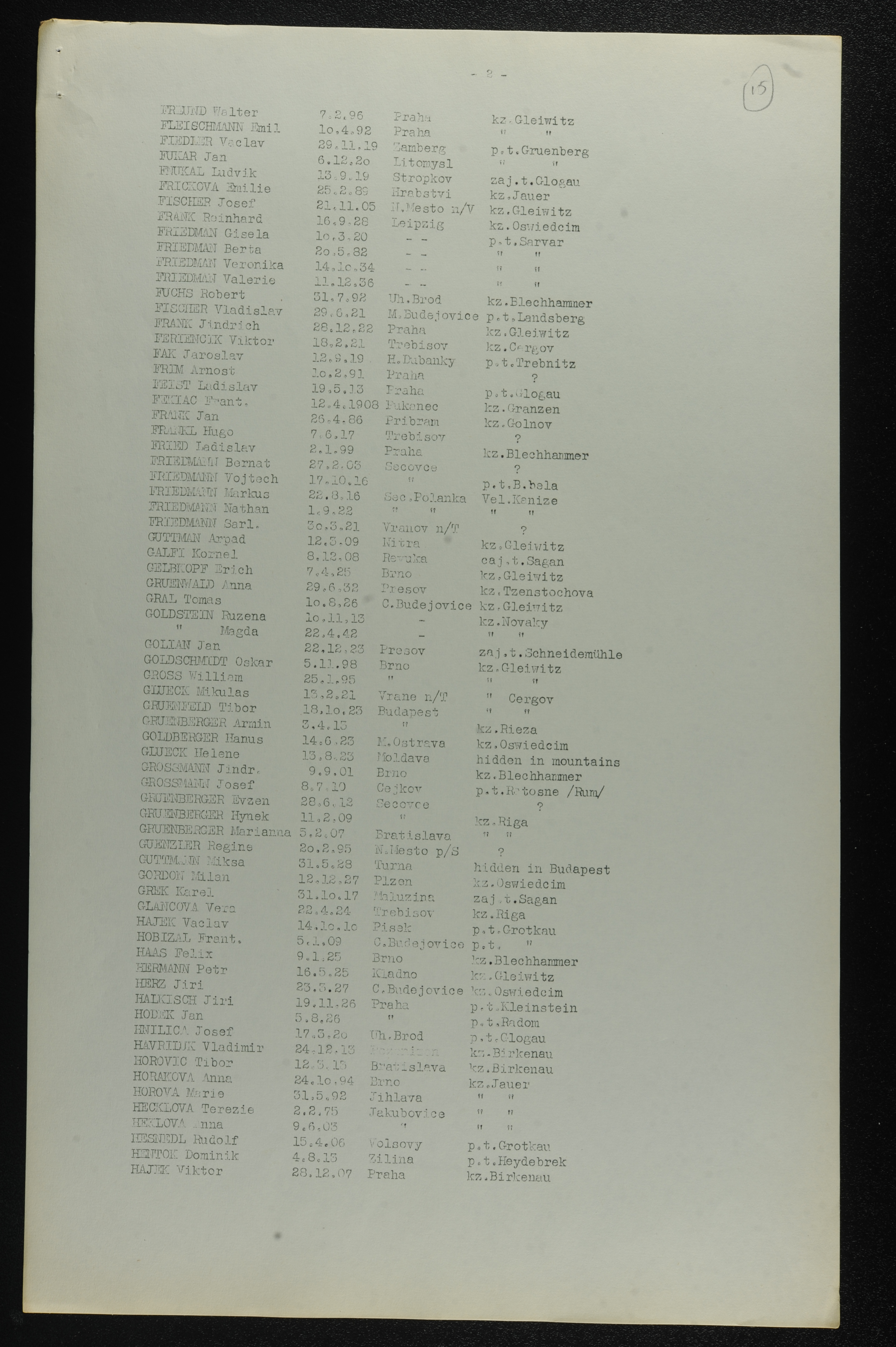 | Fuchs | Robert | 1892 | Uhersky Brod, Czechoslovakia | List of persecuted persons |