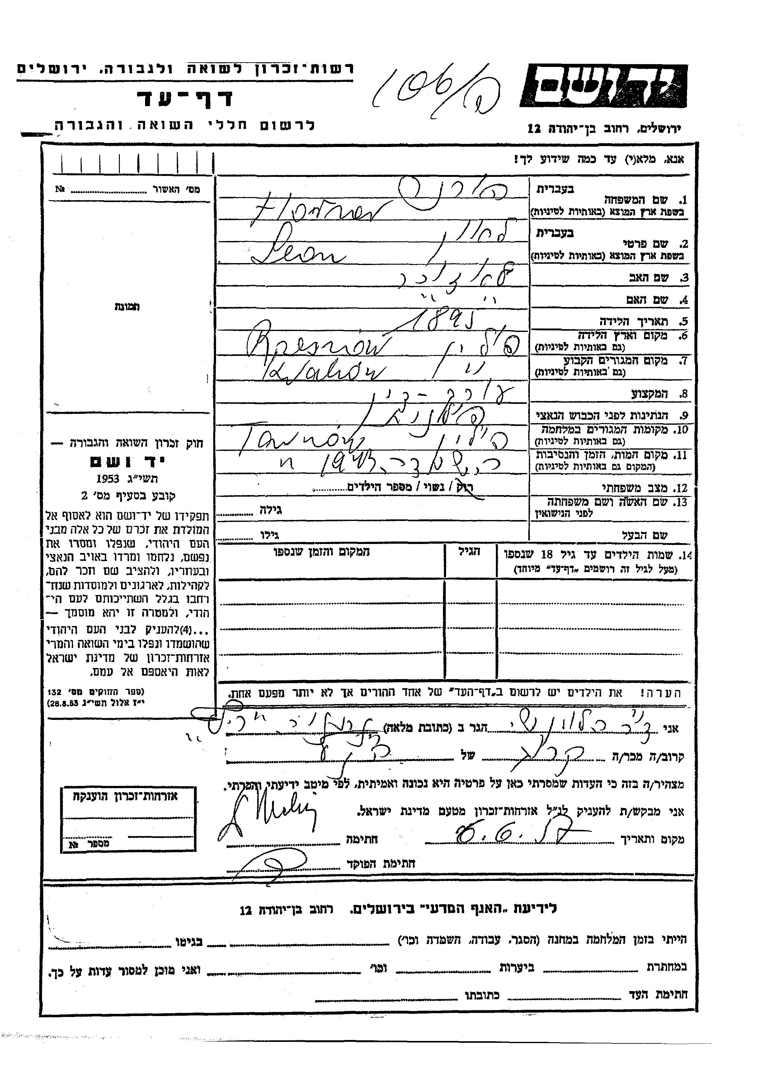 Leon was murdered in the Shoah. Place of death: Tarnow, Poland, 1943.