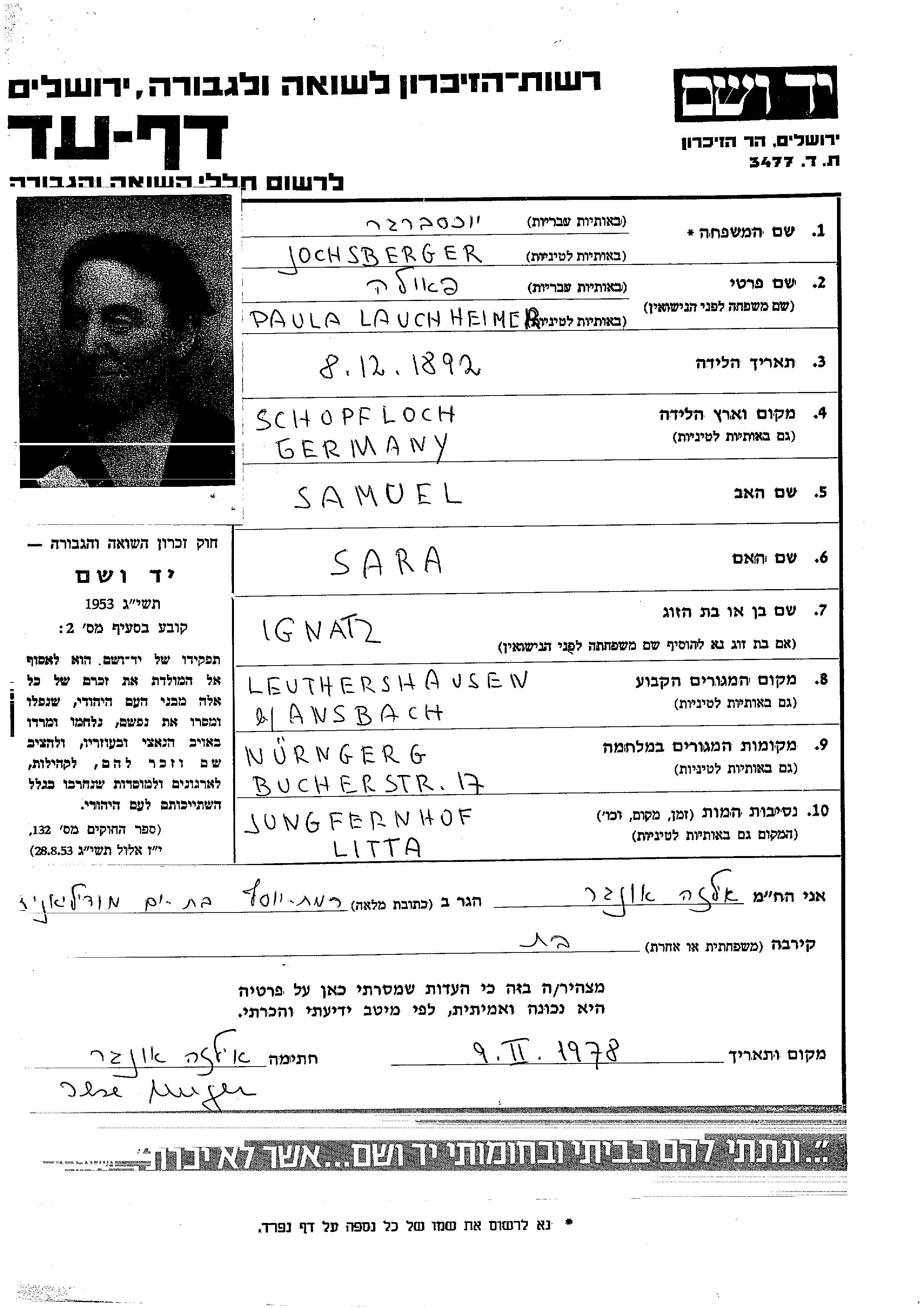 Jochsberger Paula 1892 Leutershausen Mittelfranken, Germany Page of Testimony