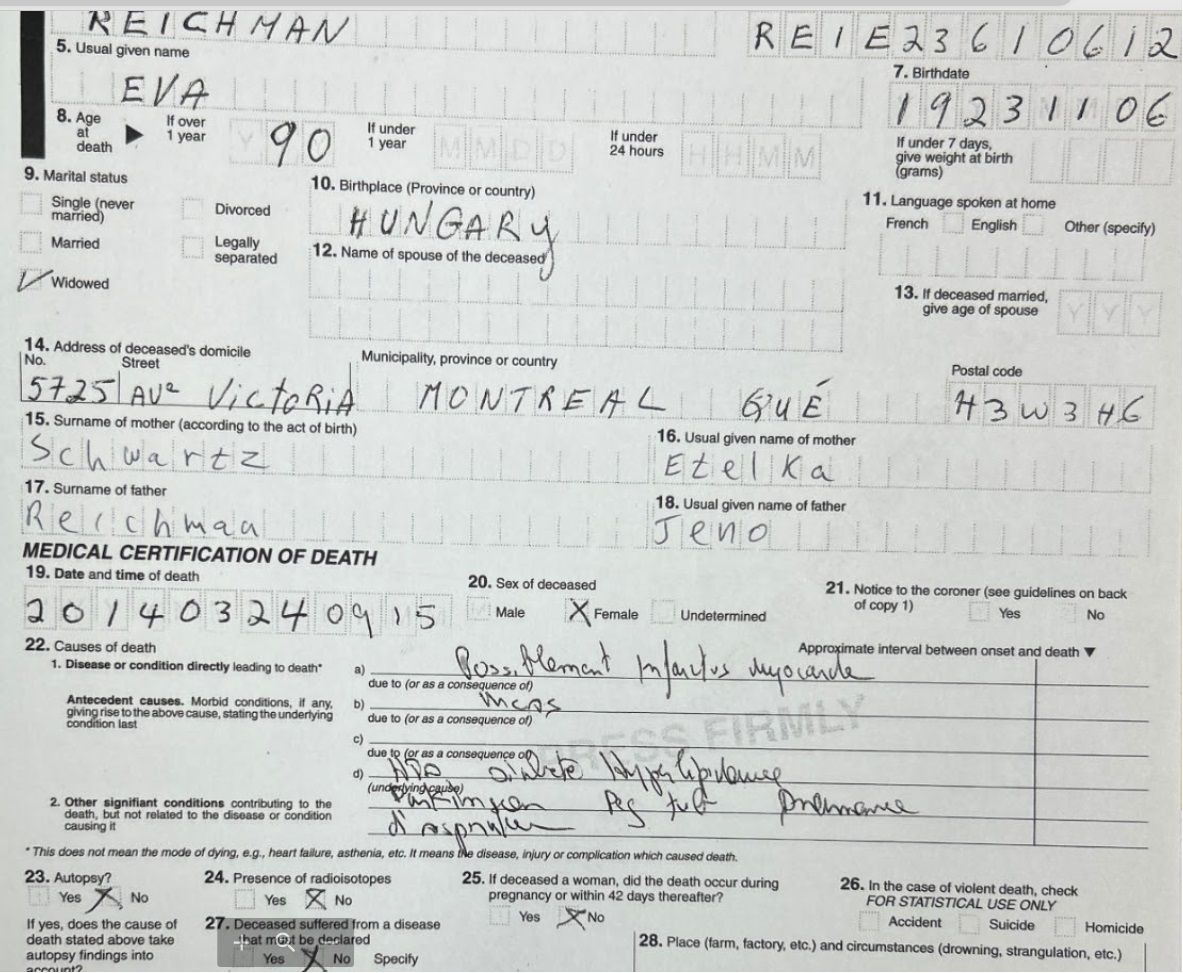 Reichmann Eva 1923 Foldes, Hungary List of survivors