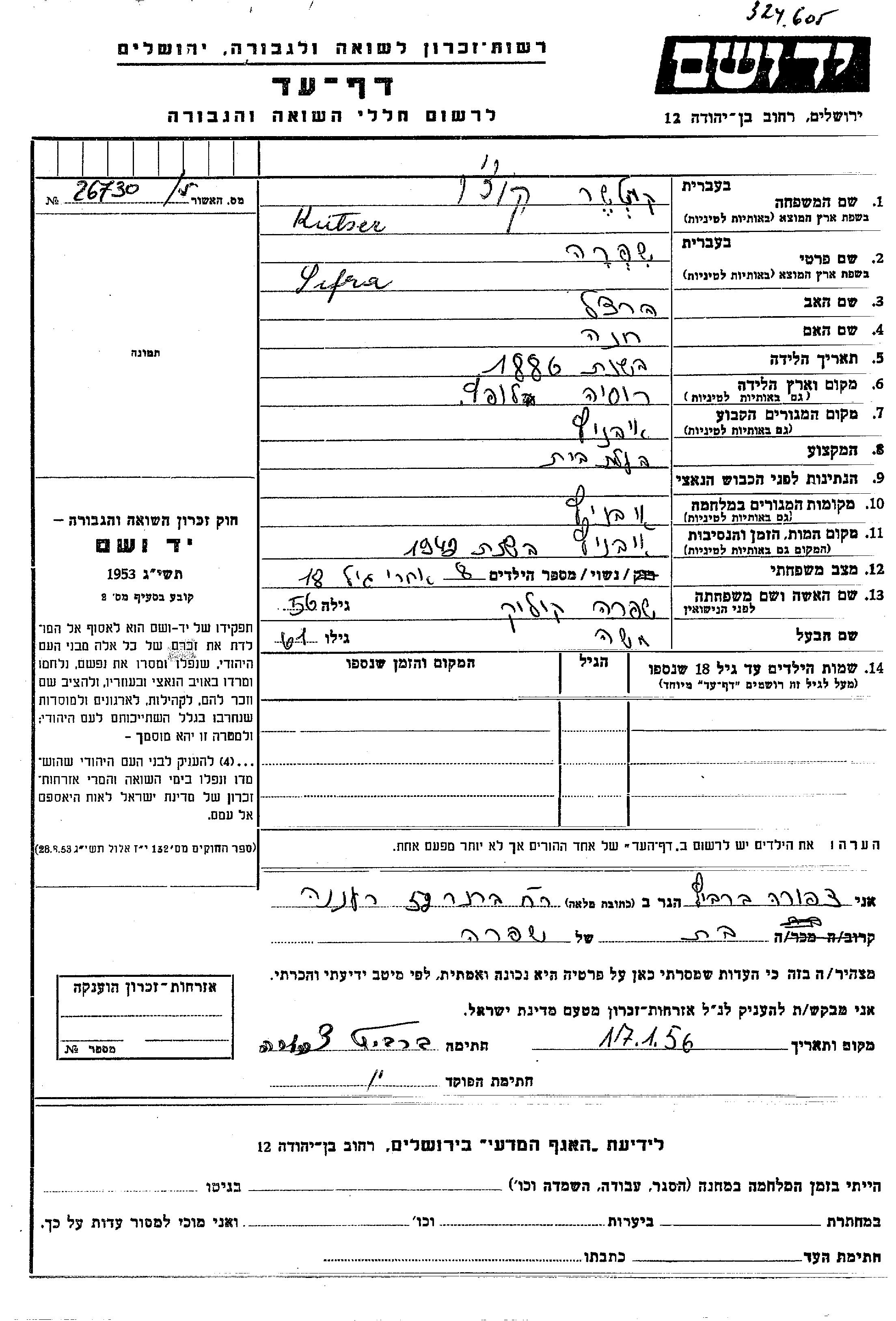 Yad Vashem - Pages of Testimony Names Memorial Collection