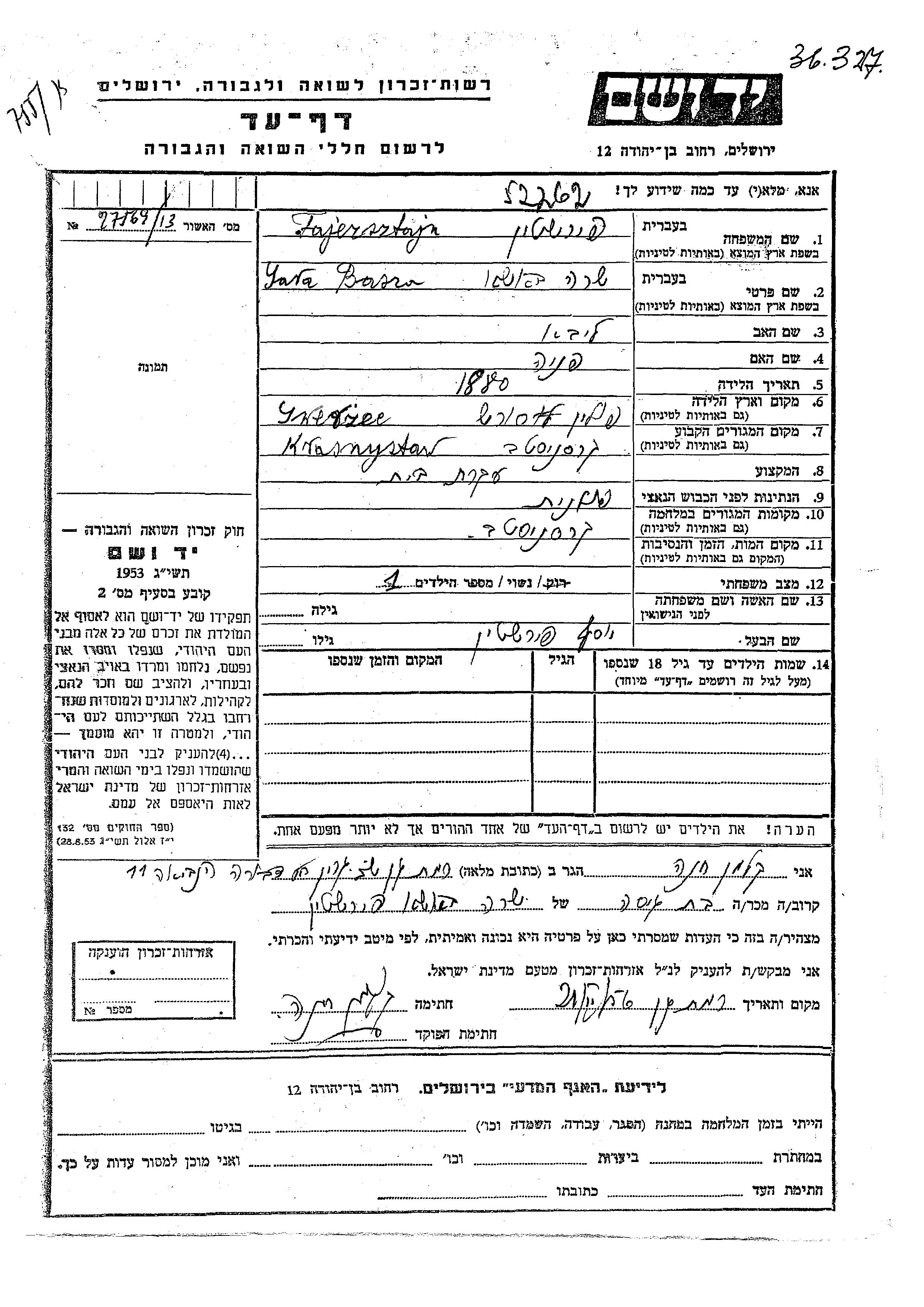 Yad Vashem - Pages of Testimony Names Memorial Collection