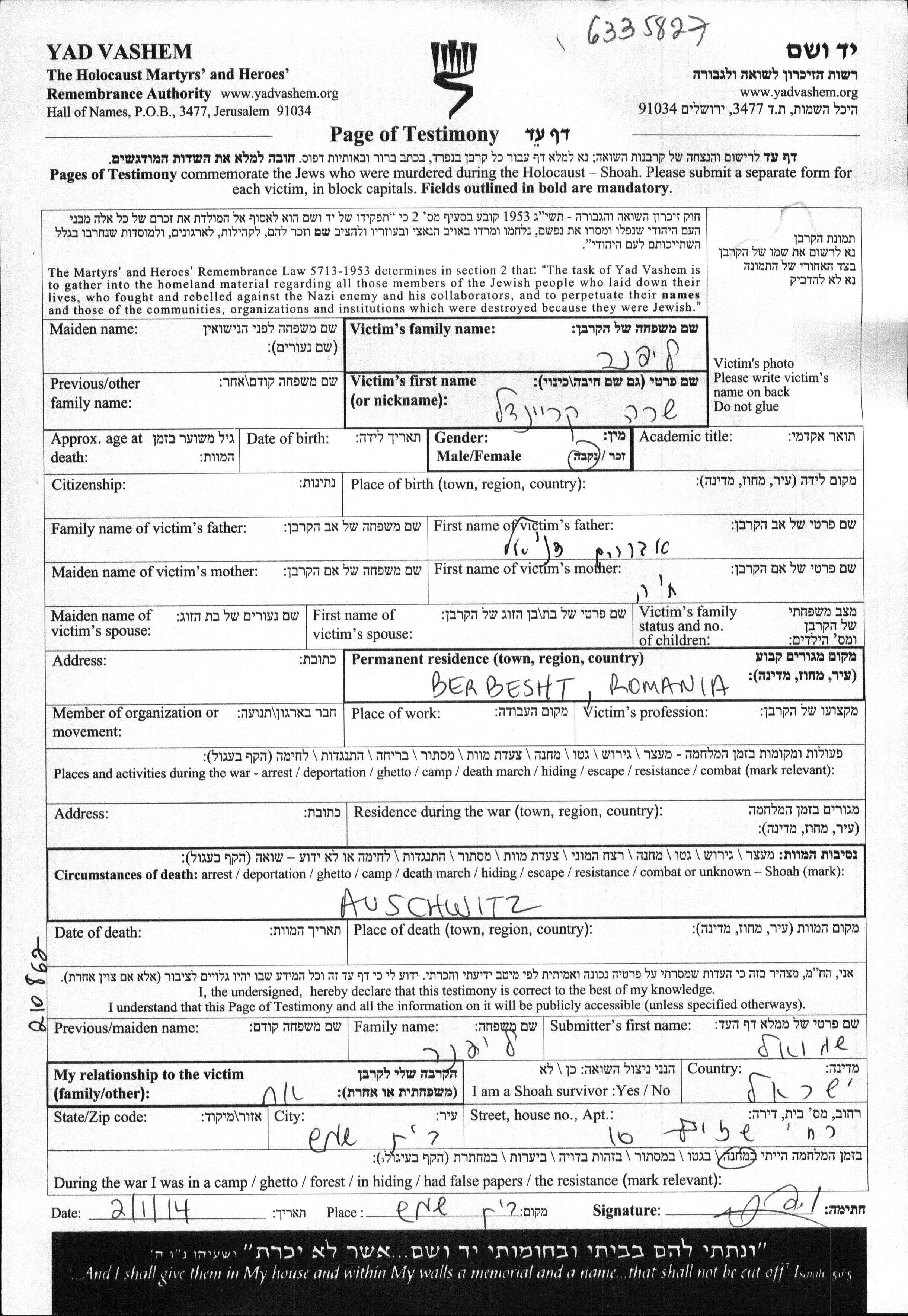 Yad Vashem - Pages of Testimony Names Memorial Collection