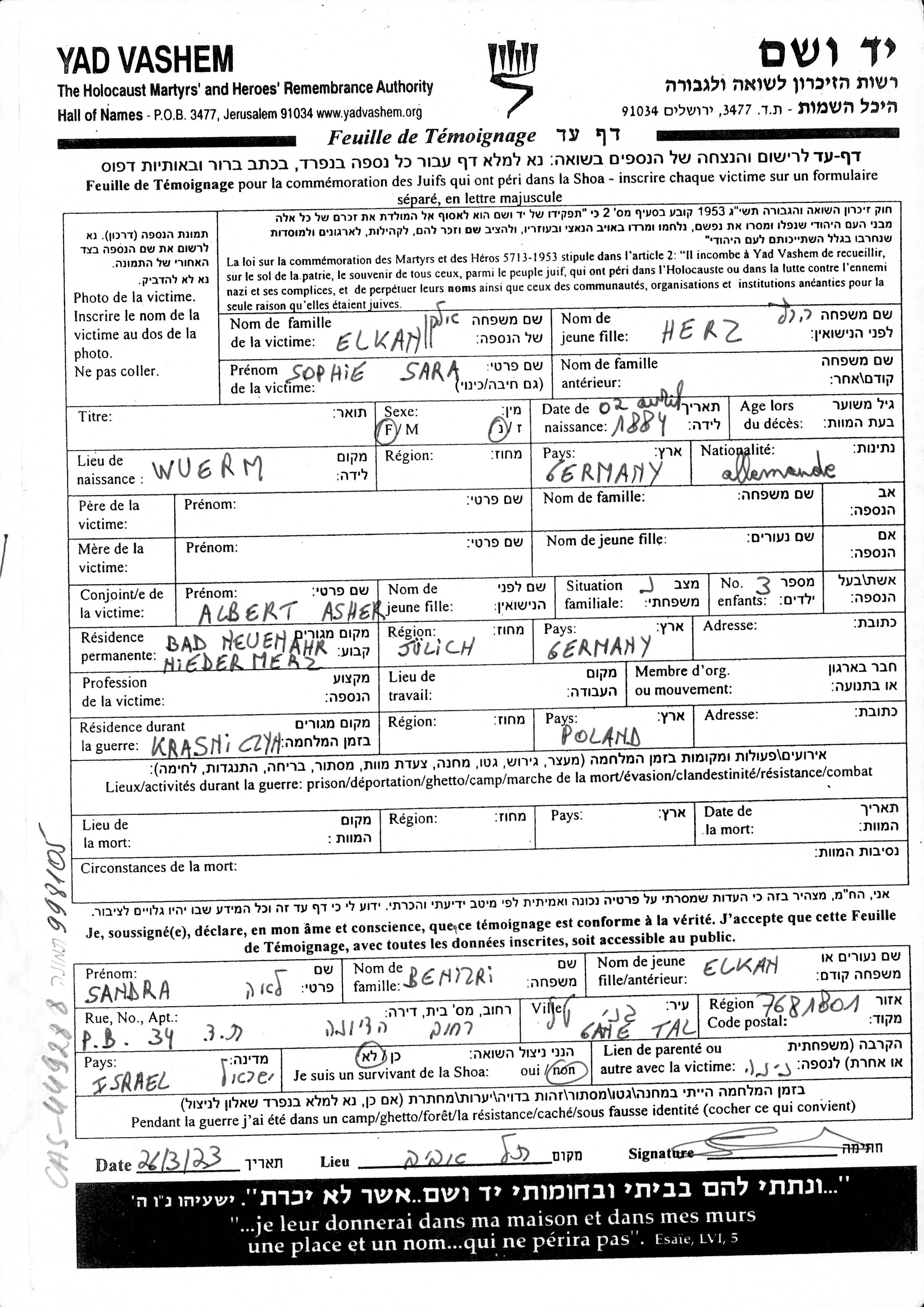Yad Vashem - Pages of Testimony Names Memorial Collection