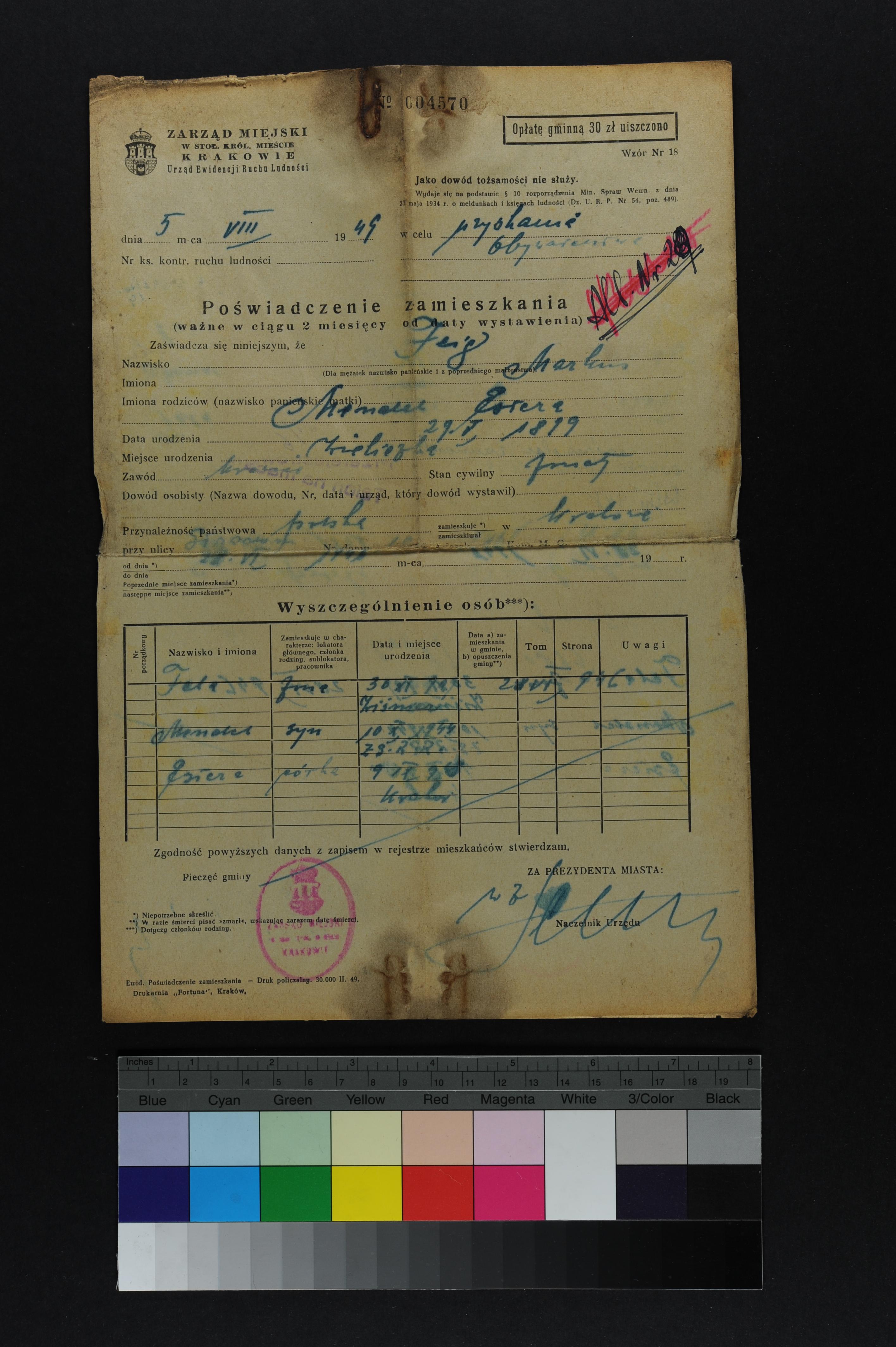 Markus Fajg was born in Krakow, Poland, 1899. He was a tailor. Prior to WWII he lived in Krakow, Poland.