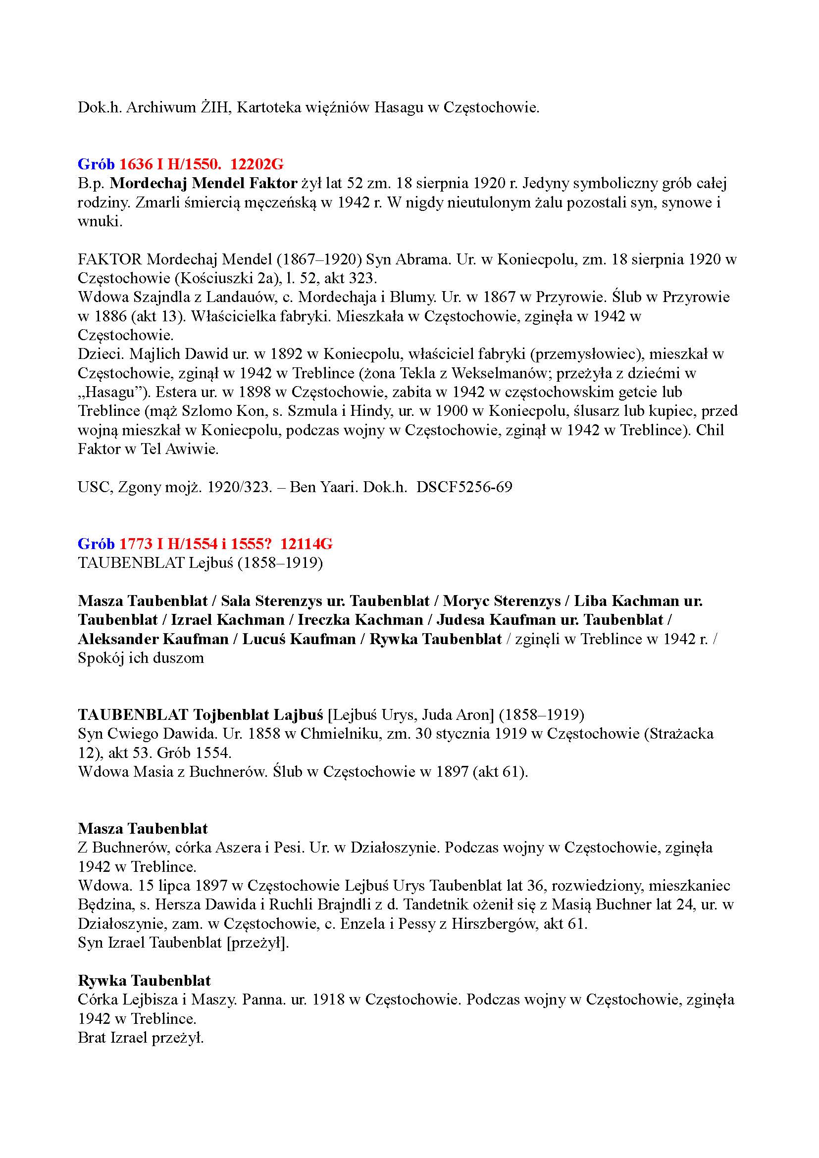 | Faktor | Yekhiel | Czestchow, Poland | Page of Testimony | |