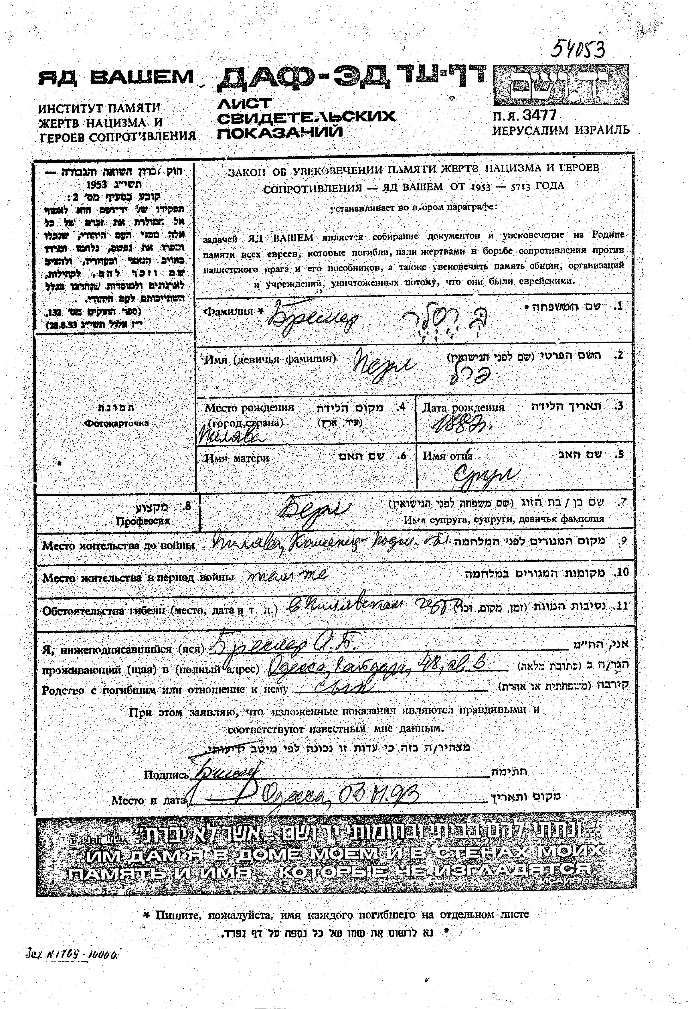 Yad Vashem - Pages of Testimony Names Memorial Collection