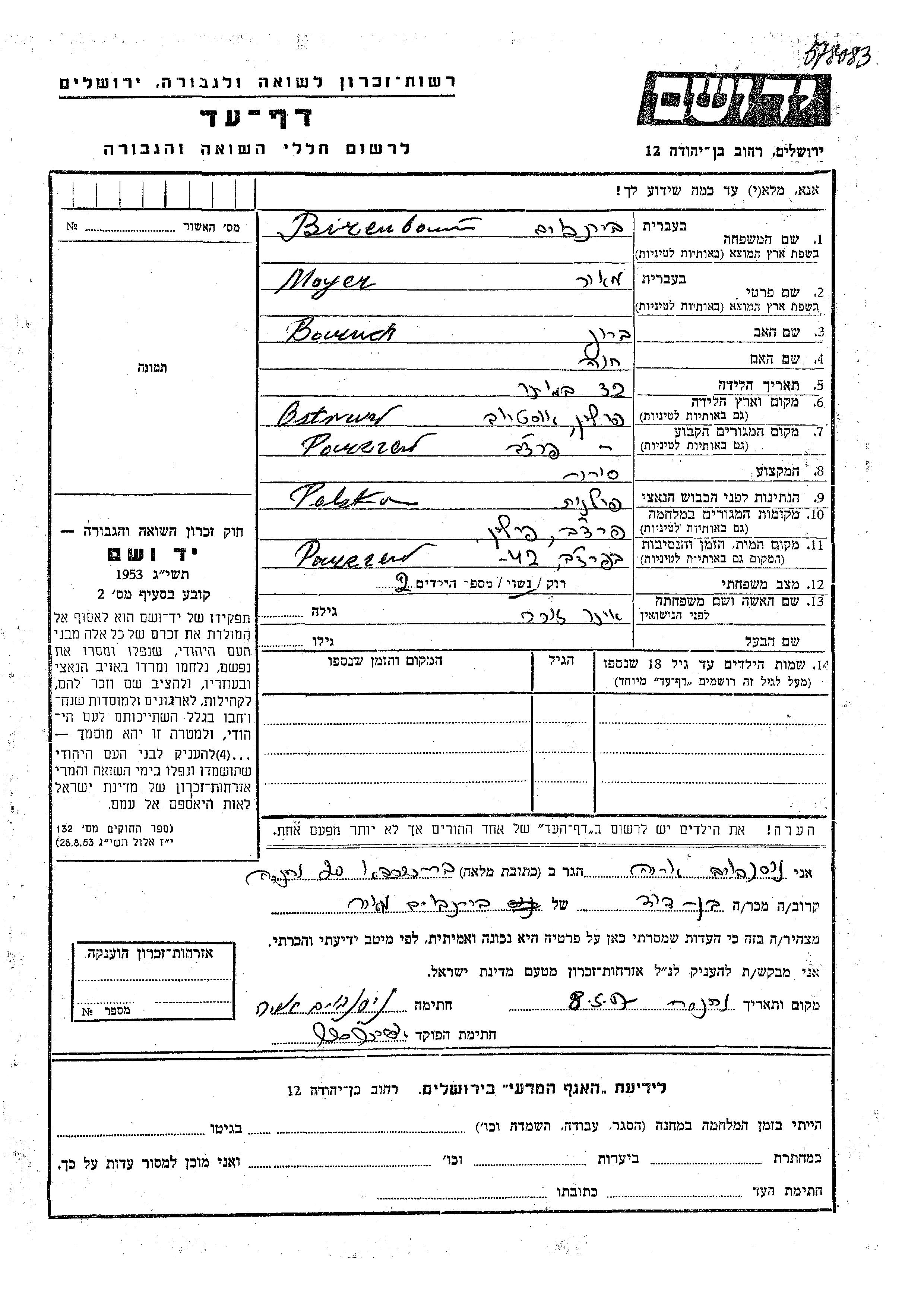 Yad Vashem - Pages of Testimony Names Memorial Collection