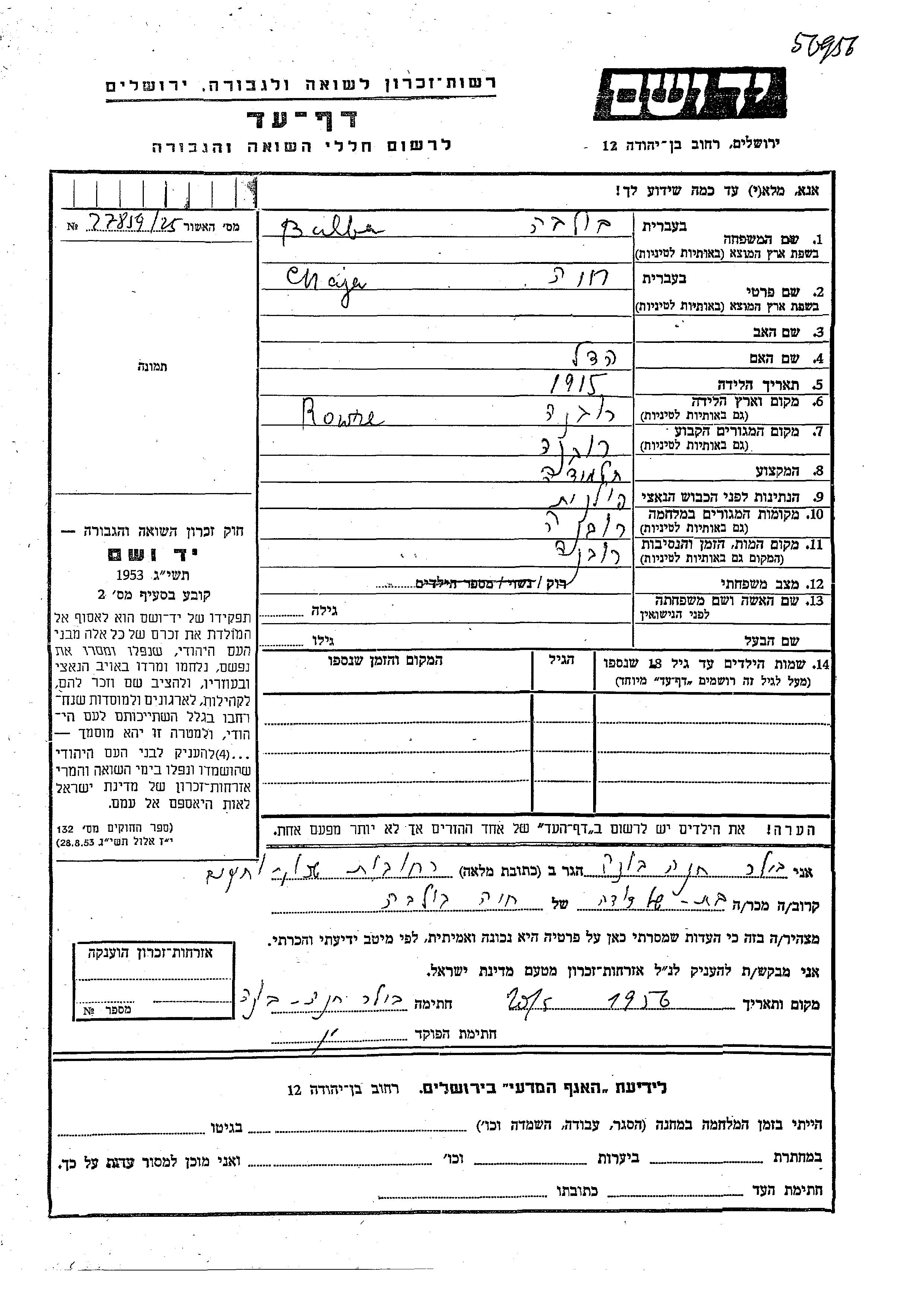 Yad Vashem - Pages of Testimony Names Memorial Collection