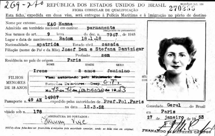 | Kac | Hanna | 1918 | Paris, France | Identity card |