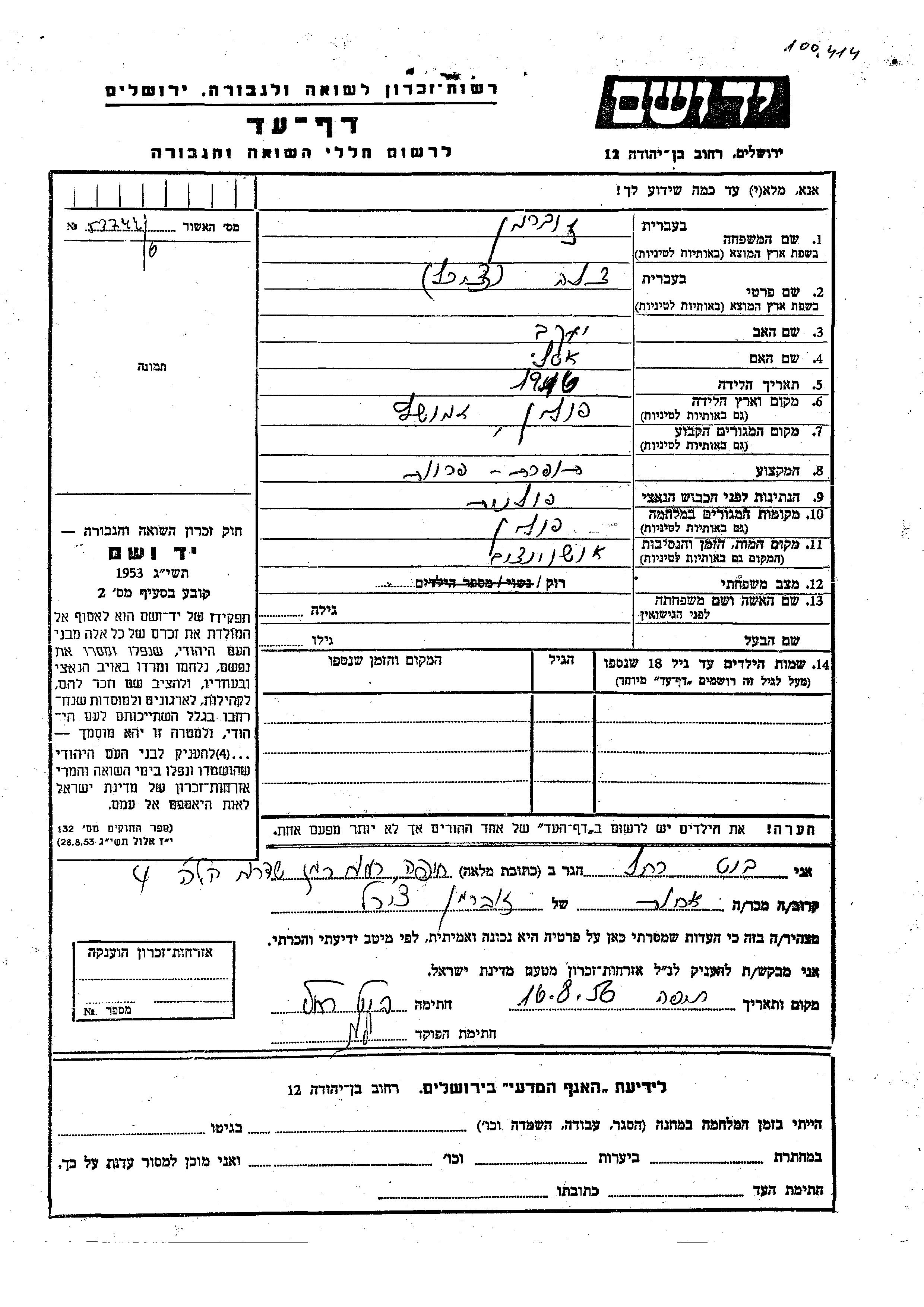 Yad Vashem - Pages of Testimony Names Memorial Collection