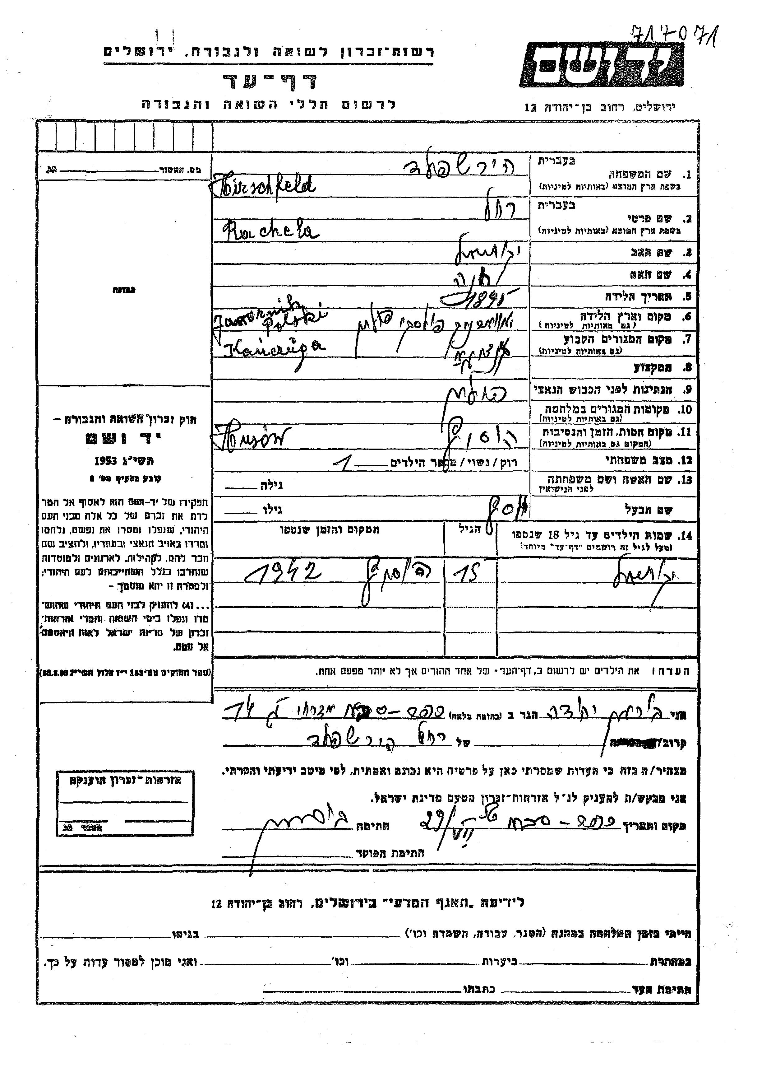 Yad Vashem - Pages of Testimony Names Memorial Collection