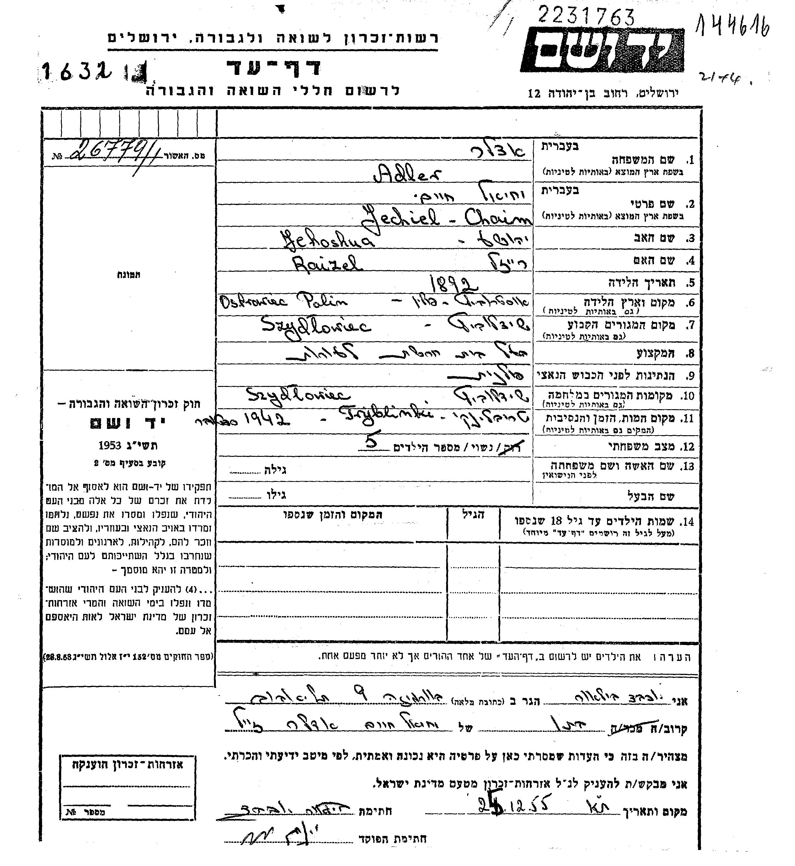 Yad Vashem - Pages of Testimony Names Memorial Collection