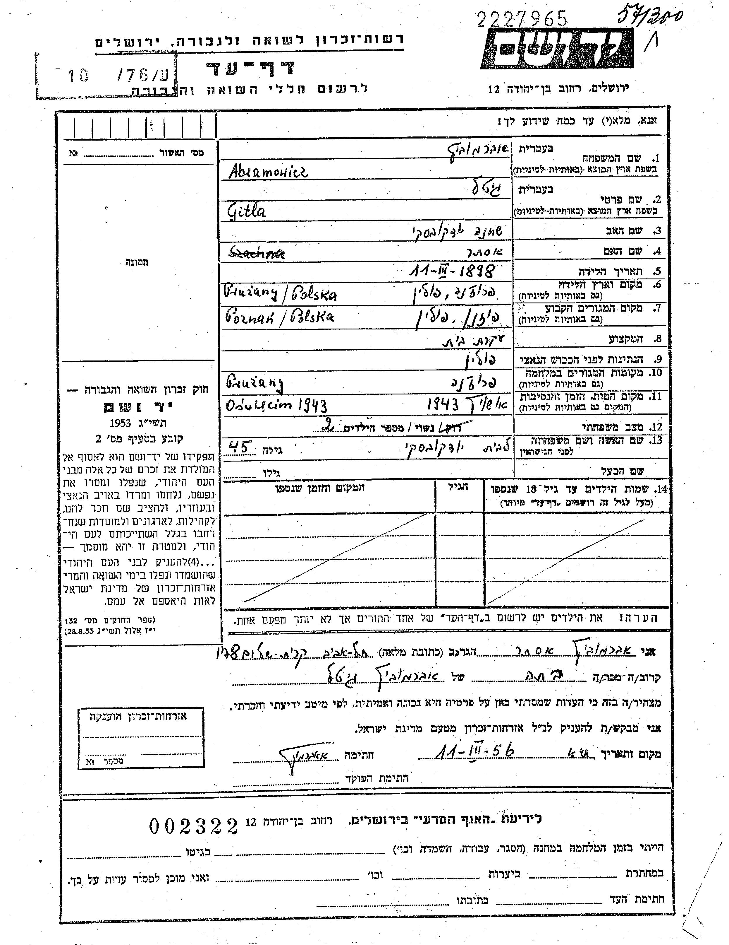 | Abramovitz | Gitel Genya | Poznan, Poland | Page of Testimony |