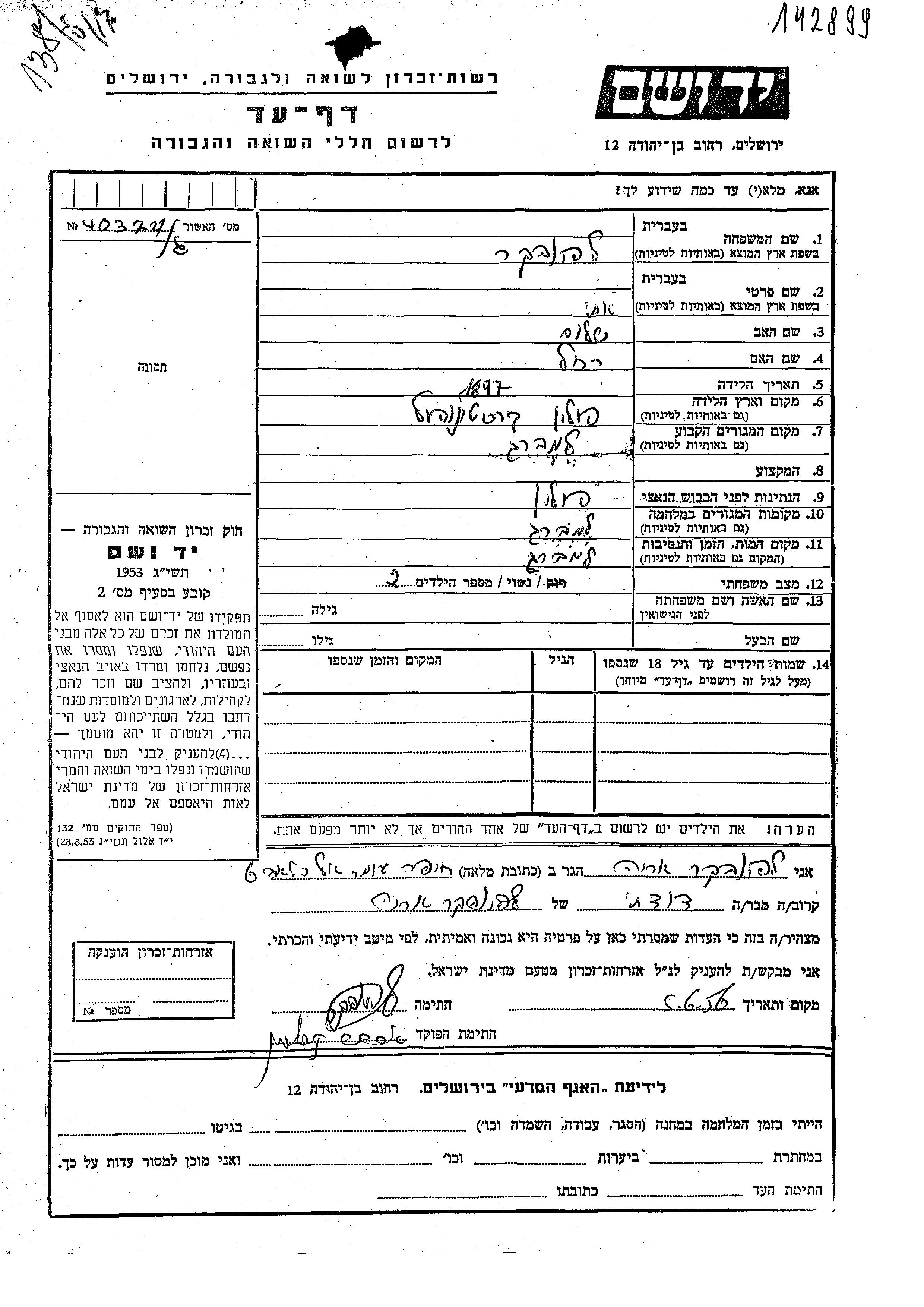 Eti Lapovker was born in Krasnopol, Poland, 1897 to Shalom and Rakhel. She was married. Prior to WWII she lived in Lemberg, Poland. During the war she was in Lemberg, Poland. Eti was murdered in the Shoah. Place of death: Lemberg, Poland.