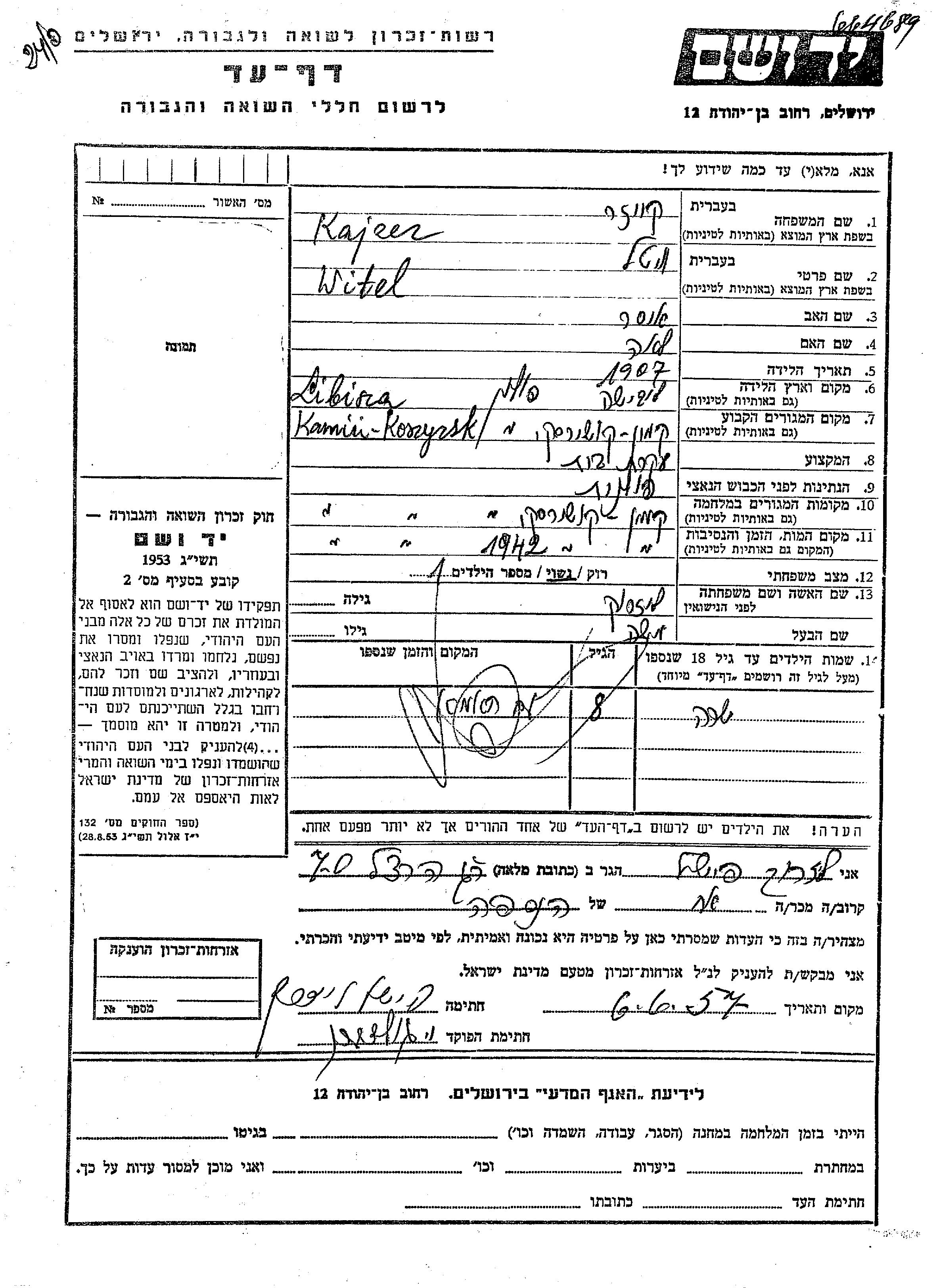 | Kajzer | Witel | 1907 | Kamin Koshirski, Poland | Page of Testimony |