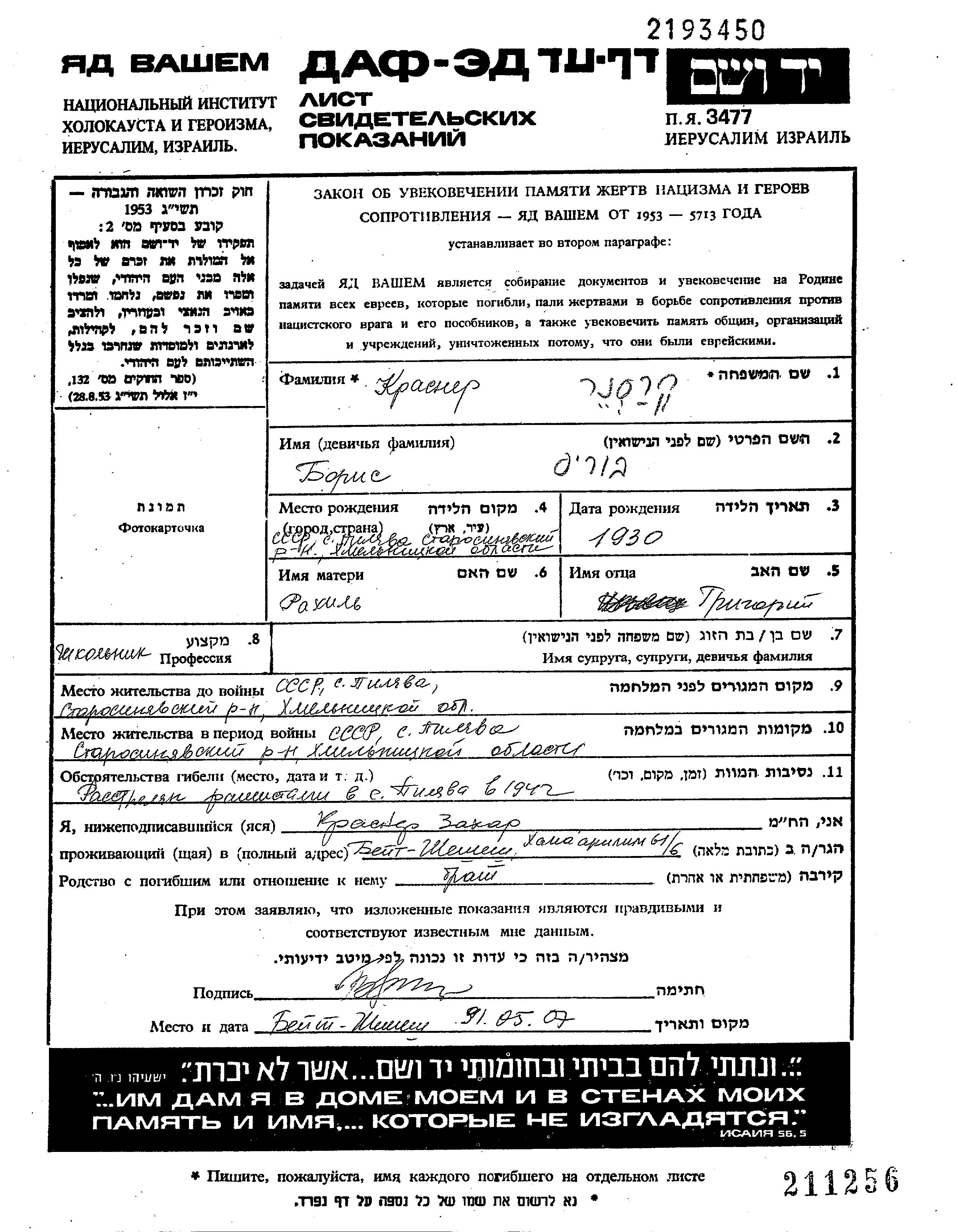Search by name of Prewar permanent residence, Town, Village, District, Region or Country.