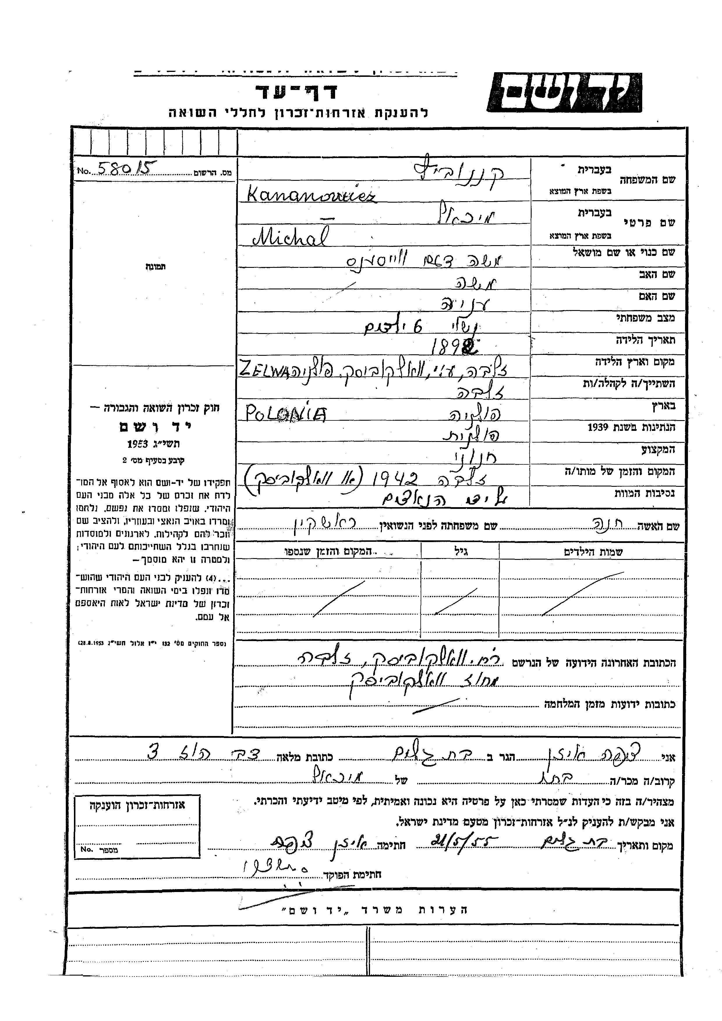 Kananowicz Michal 1892 Zelwa, Poland Page of Testimony