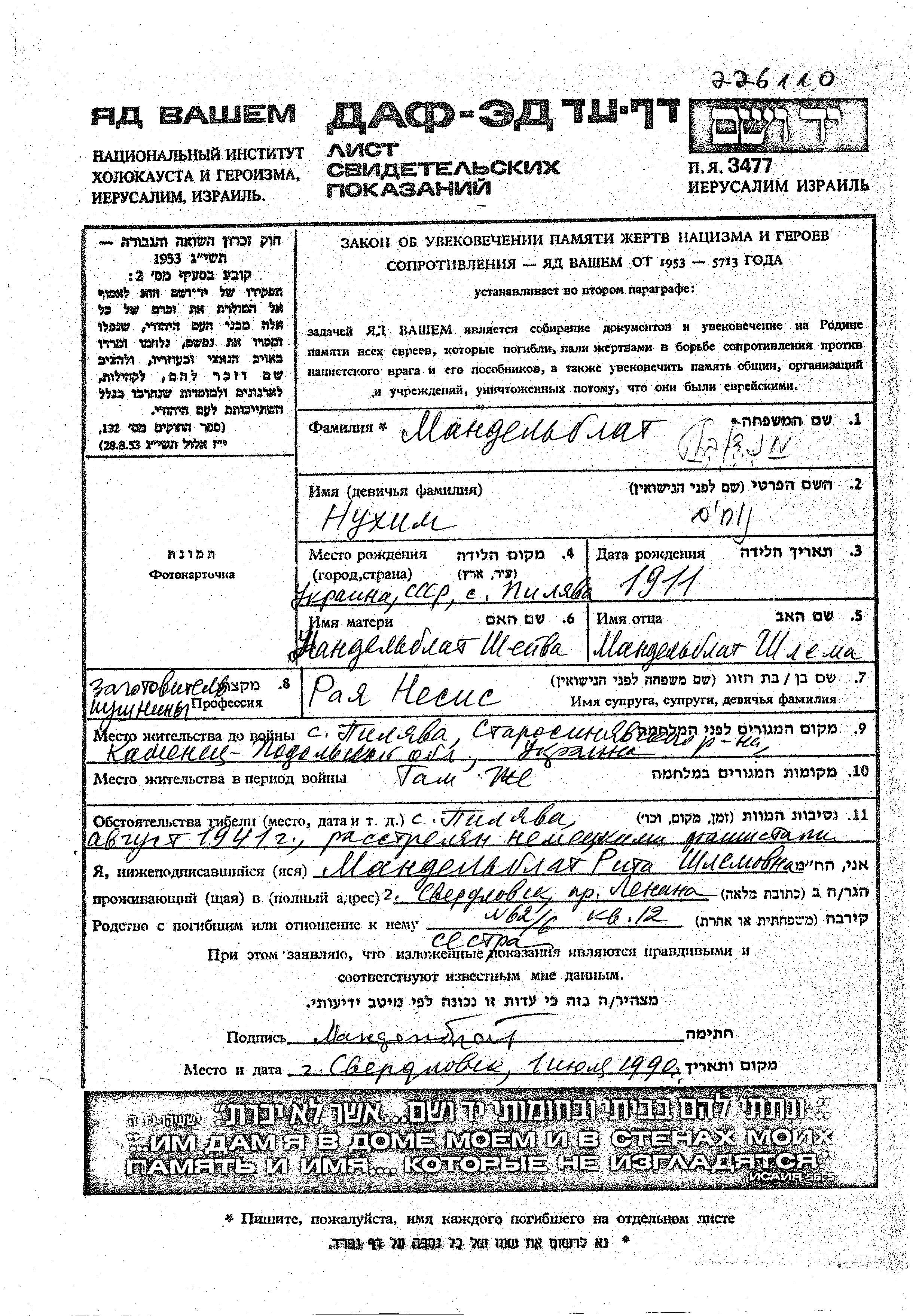 Mandelblat Rita Pilyava, Ukraine (USSR) Page of Testimony