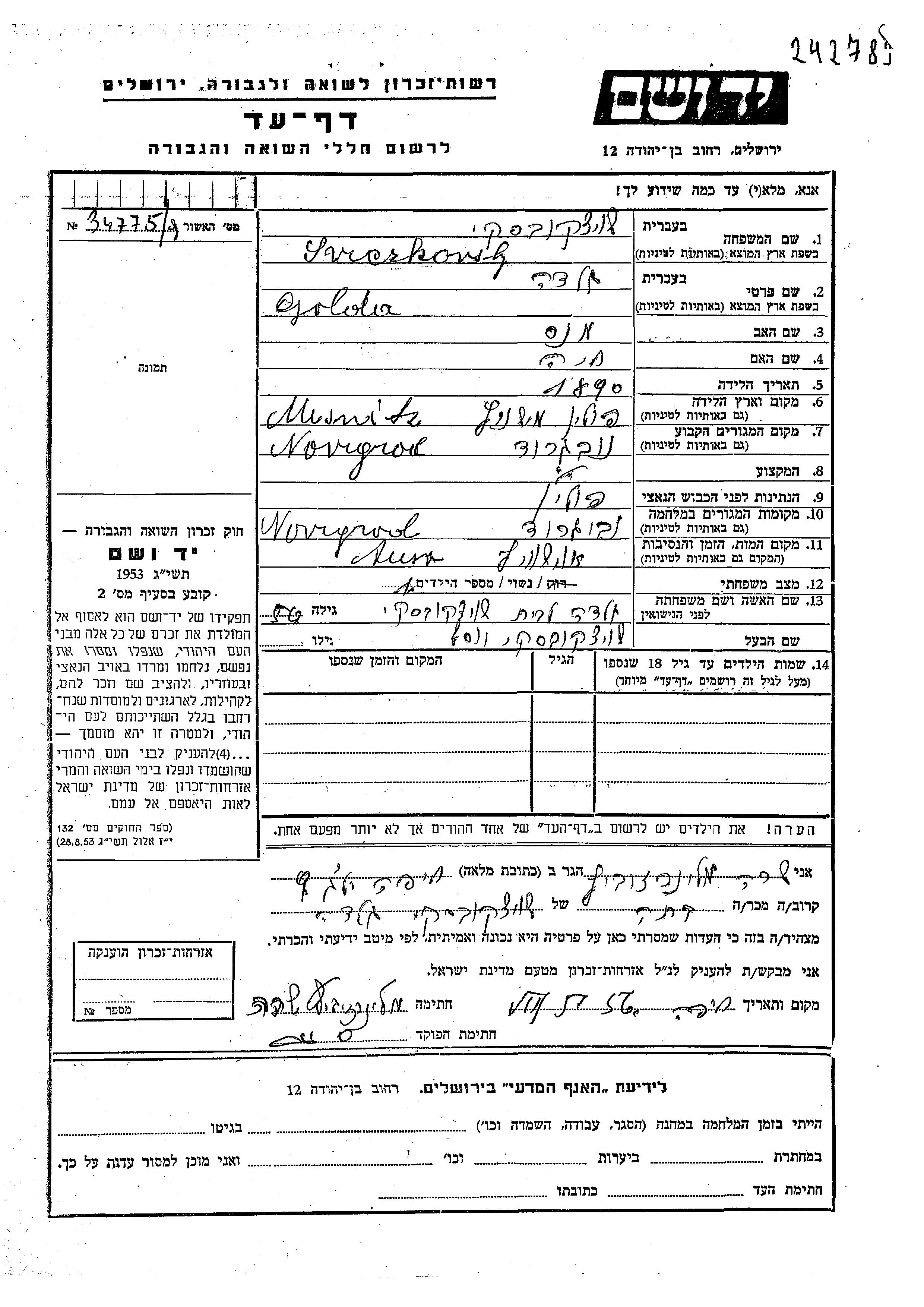 Yad Vashem - Pages of Testimony Names Memorial Collection