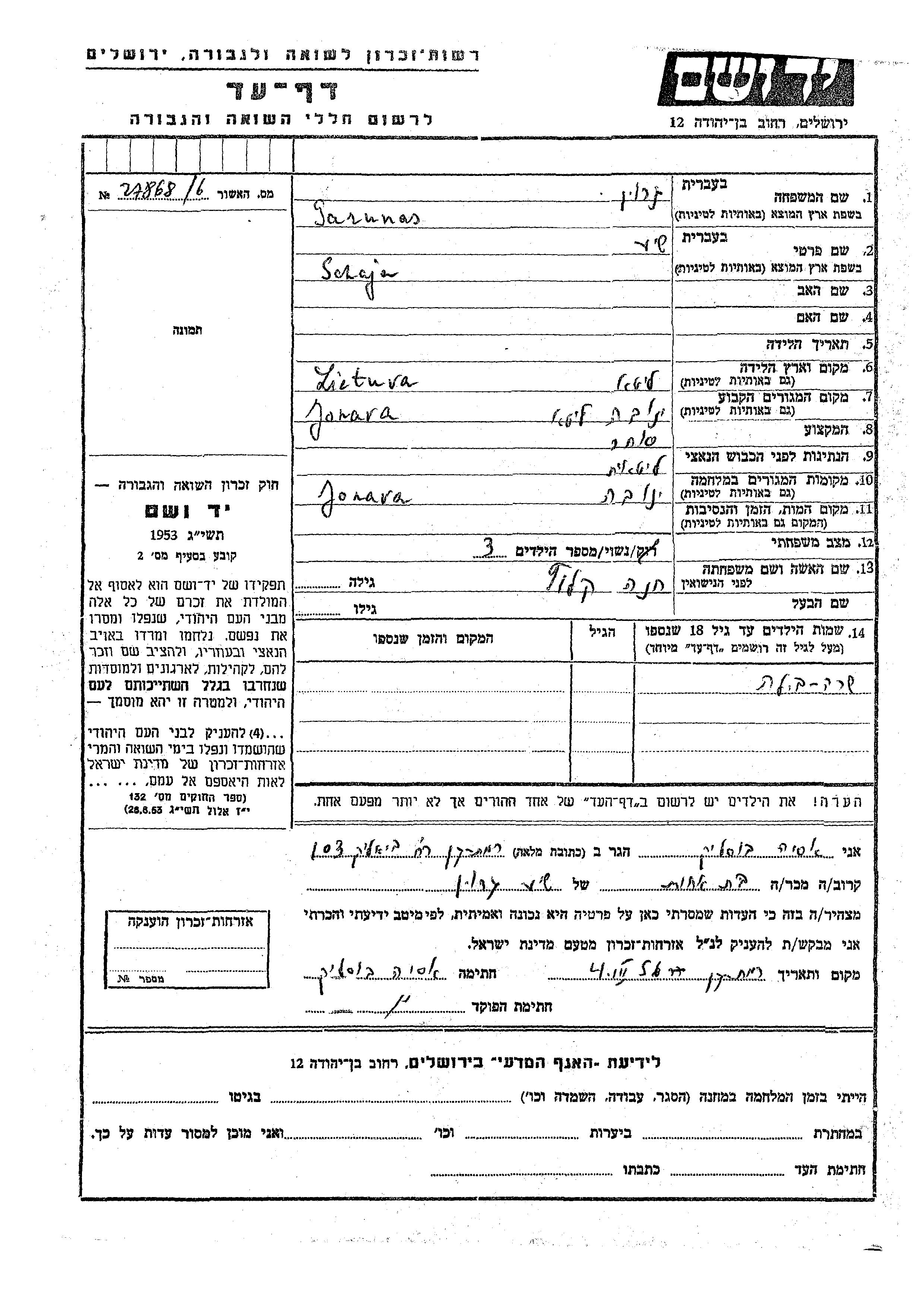 Garunas Grun Schaja Shiye Jonava, Lithuania Page of Testimony