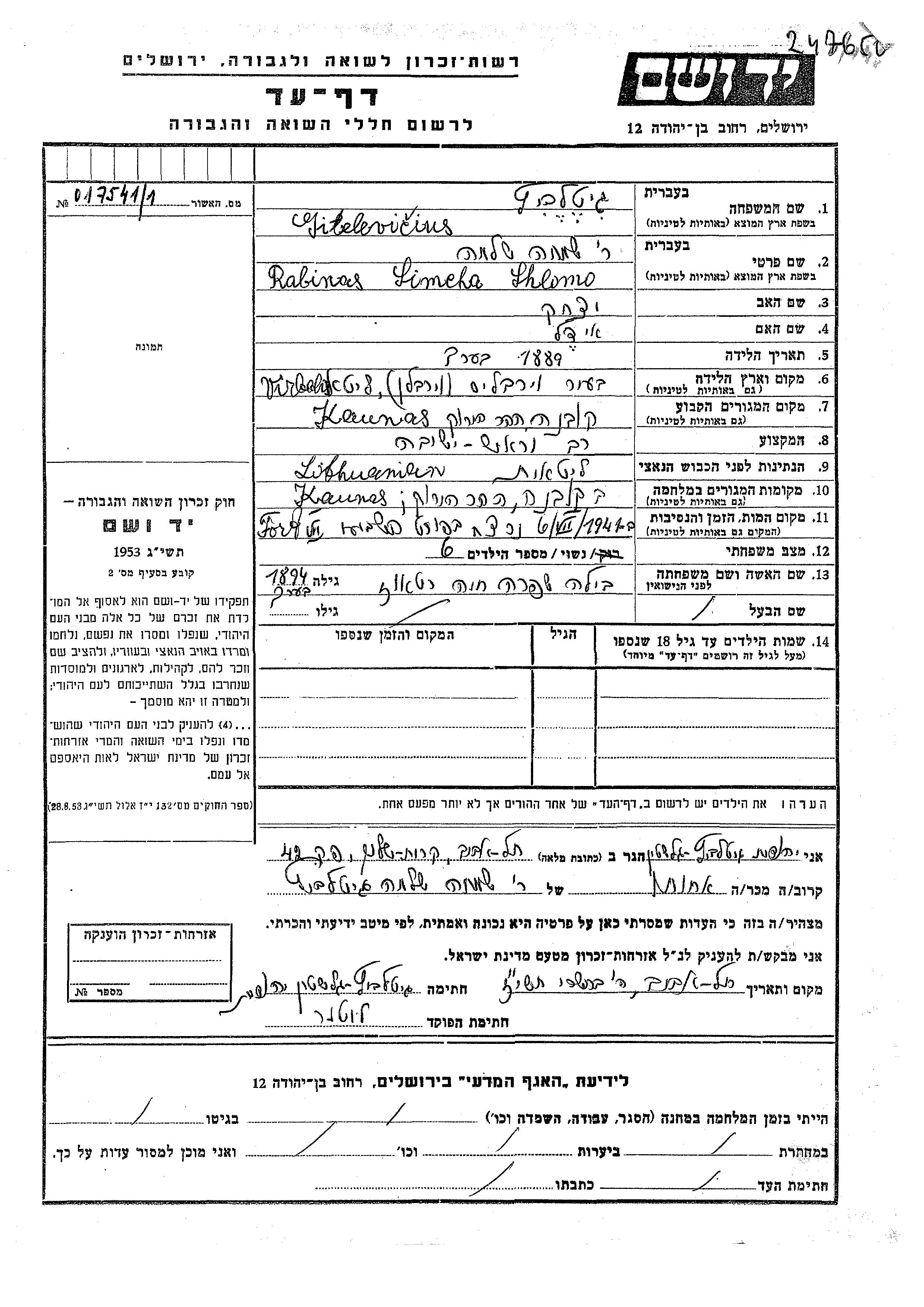 Gitelevicius Simcha Shlomo 1889 Kaunas, Lithuania Page of Testimony