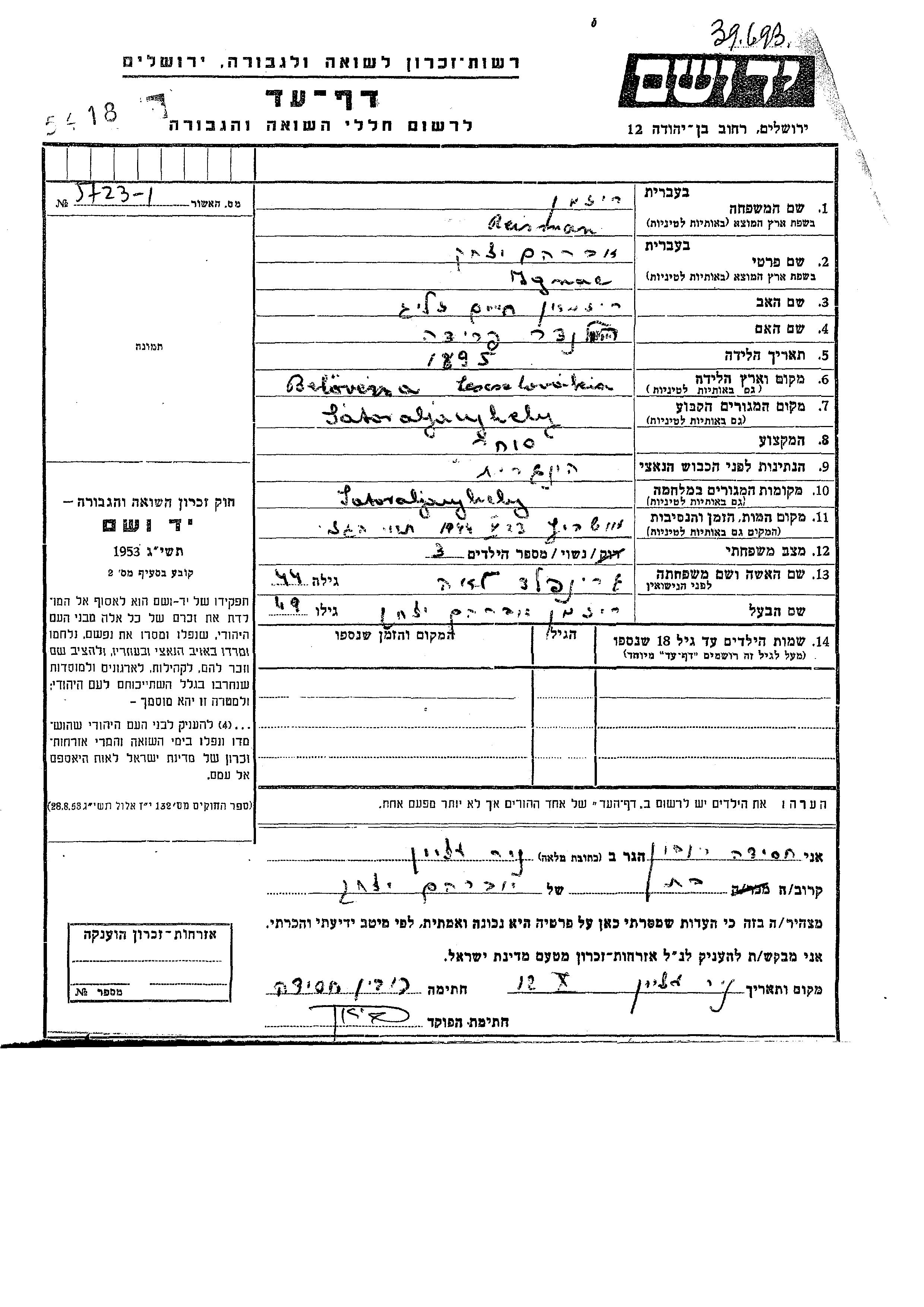 Yad Vashem - Pages of Testimony Names Memorial Collection