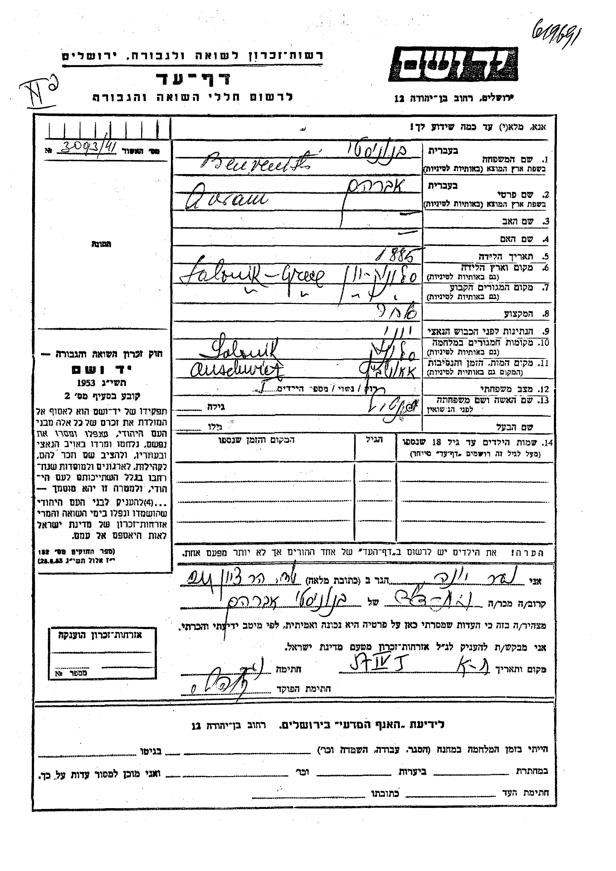 Search by last name of the submitter of the Page of Testimony, including diminutives or nicknames
