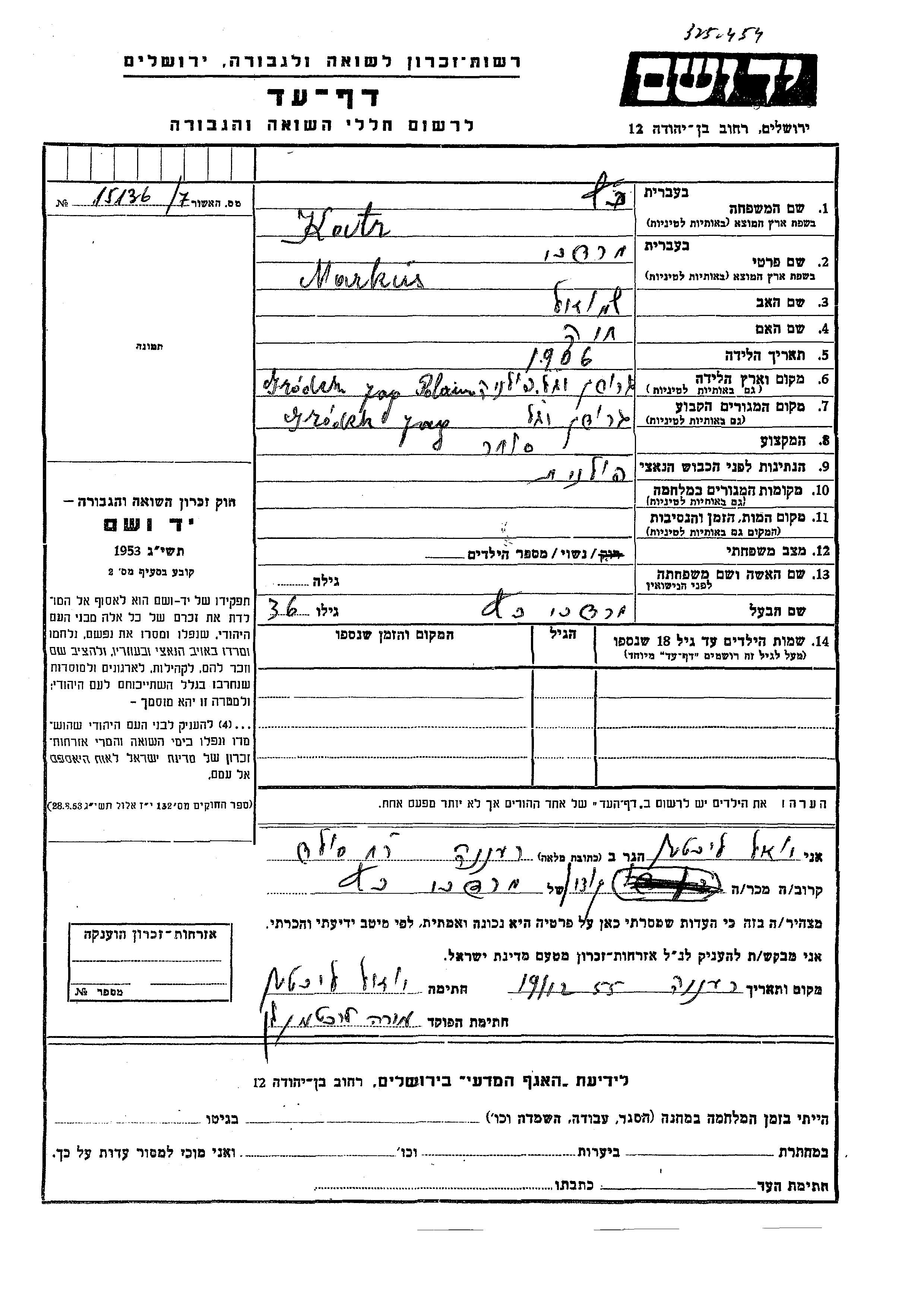 Yad Vashem - Pages of Testimony Names Memorial Collection