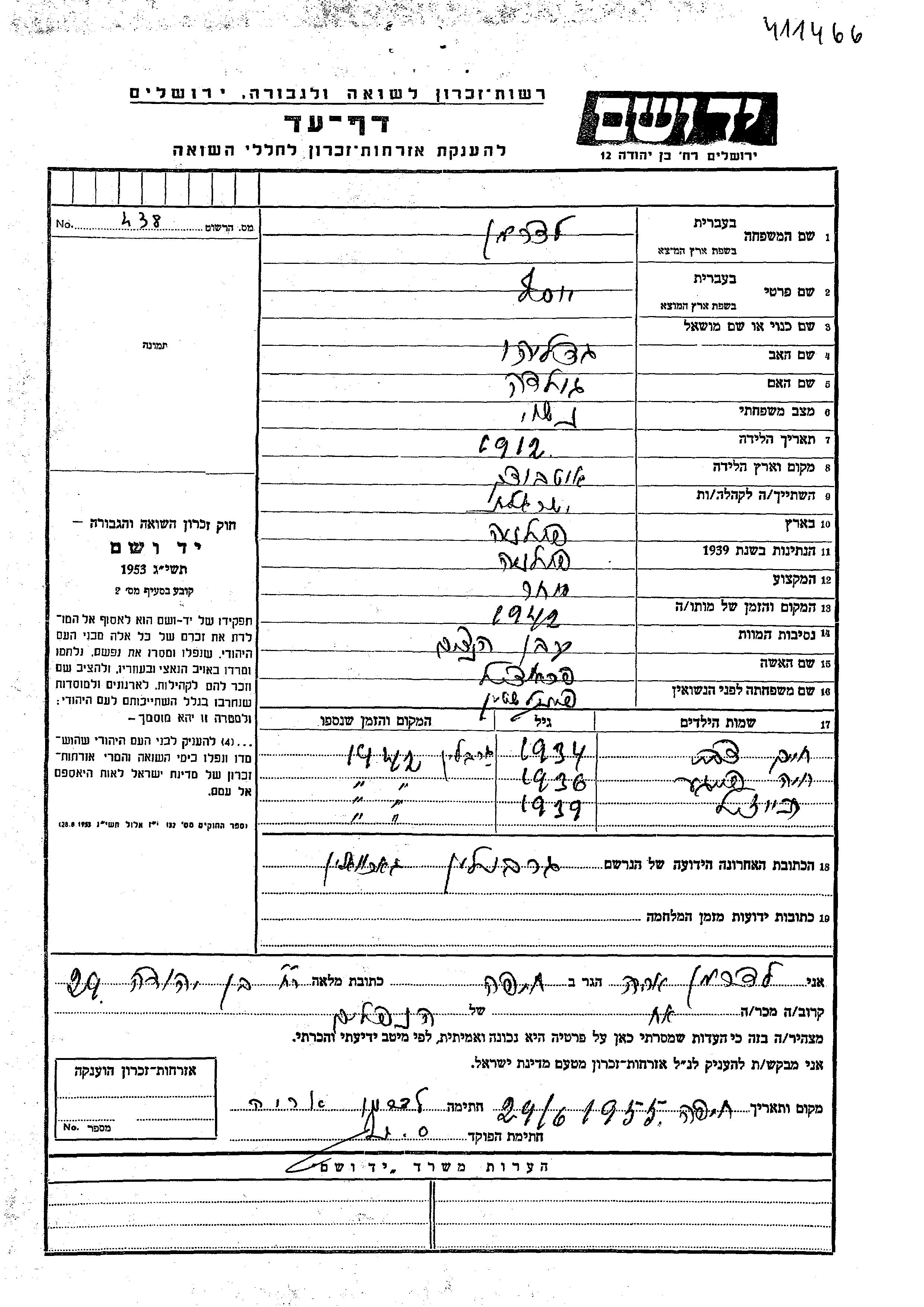 Yad Vashem - Pages of Testimony Names Memorial Collection