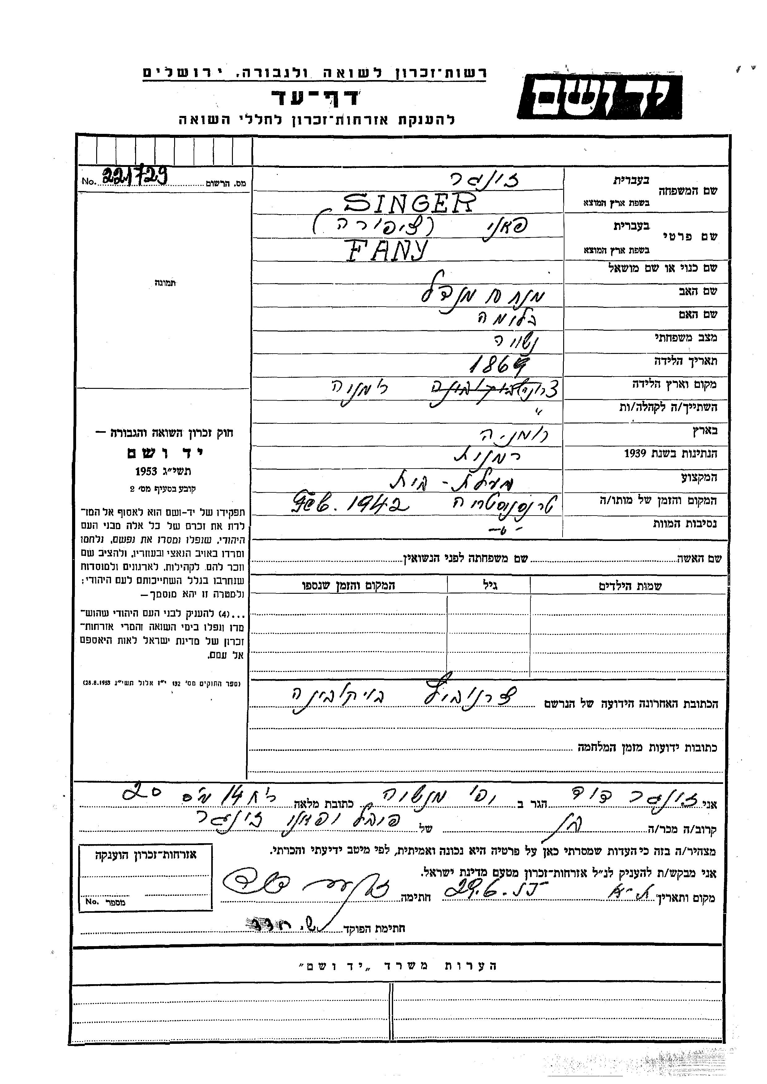 Search by last name of the submitter of the Page of Testimony, including diminutives or nicknames