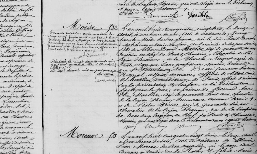 Oulmann Moïse Jenny Sarah 1883 Paris, France Marriage certificate