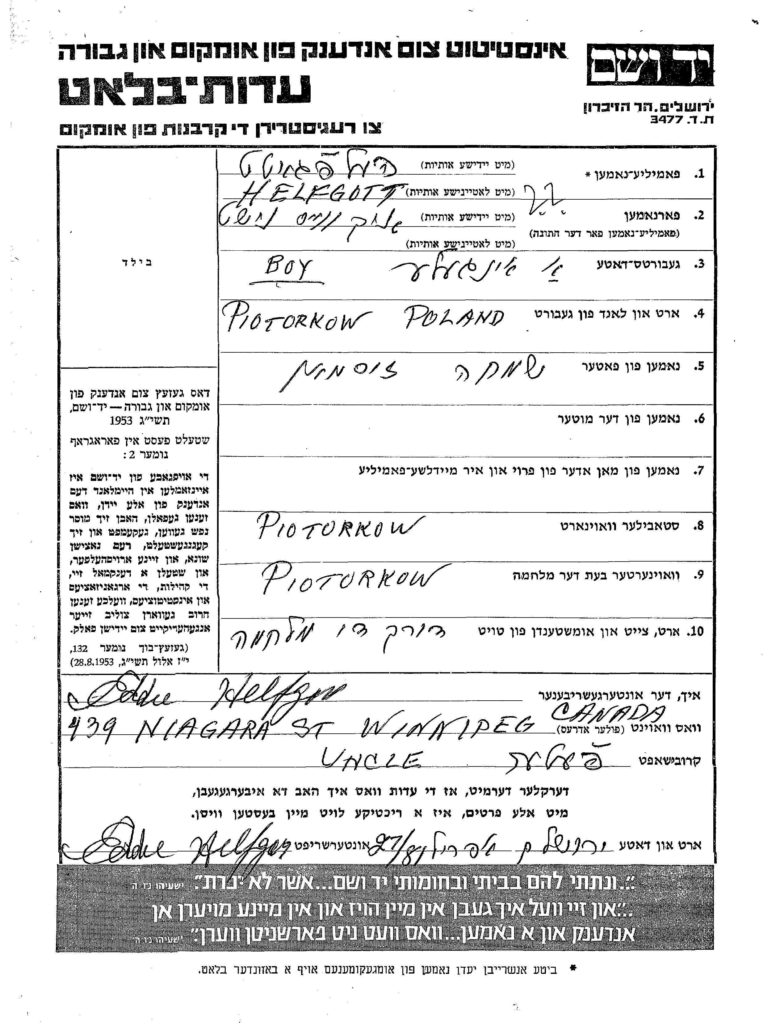 Helfgott First name unknown Piotrkow, Poland Page of Testimony