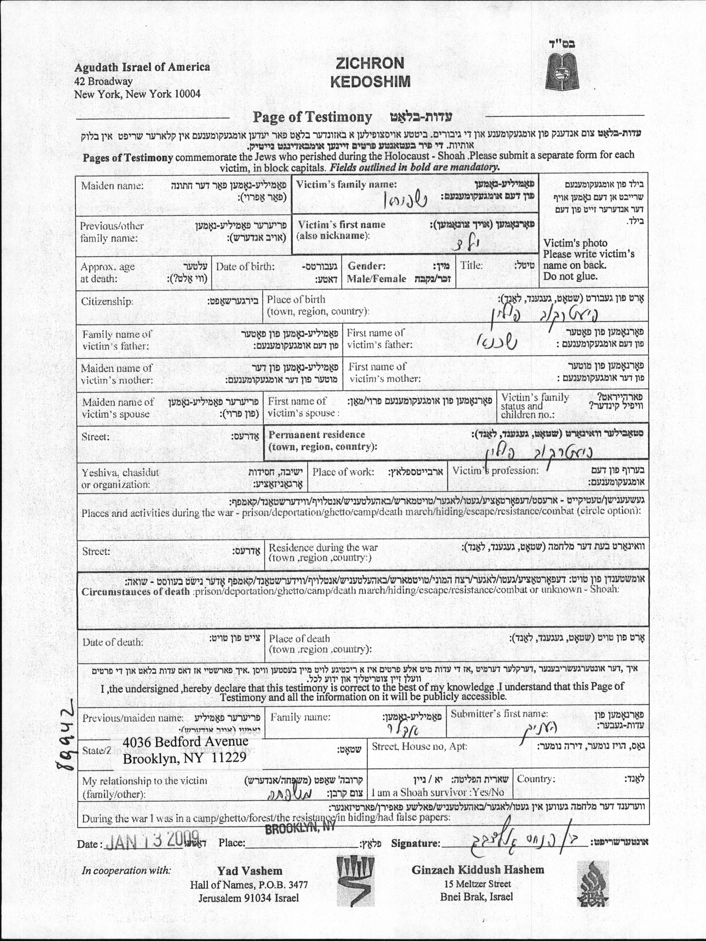 Yad Vashem - Pages of Testimony Names Memorial Collection