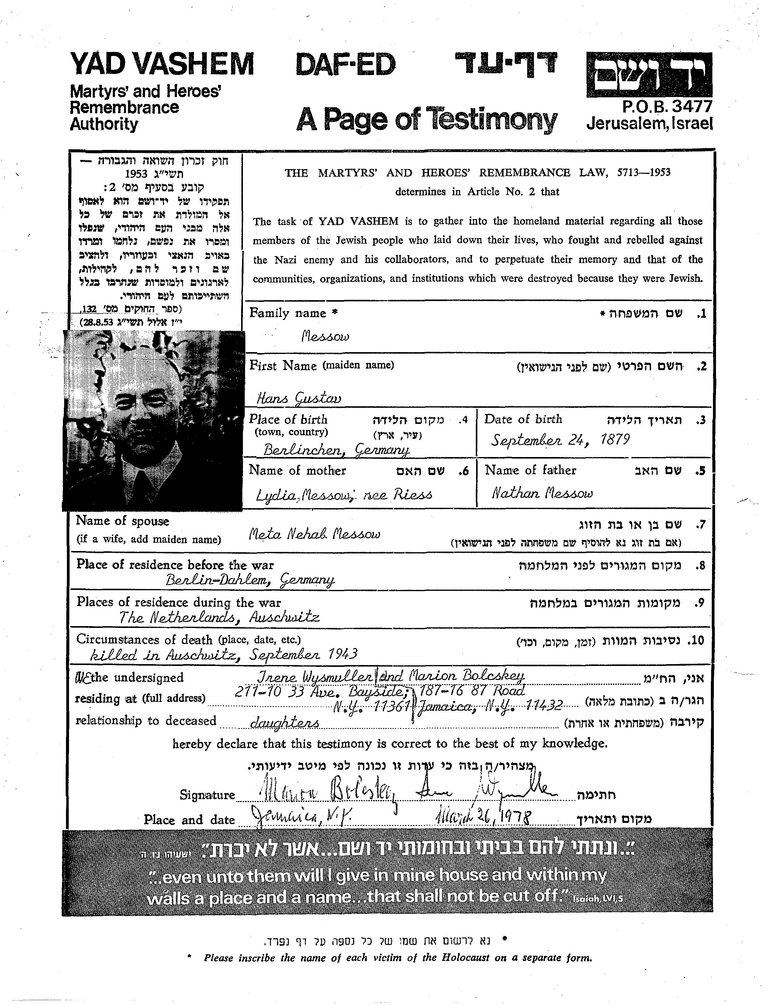 Search by last name of the submitter of the Page of Testimony, including diminutives or nicknames