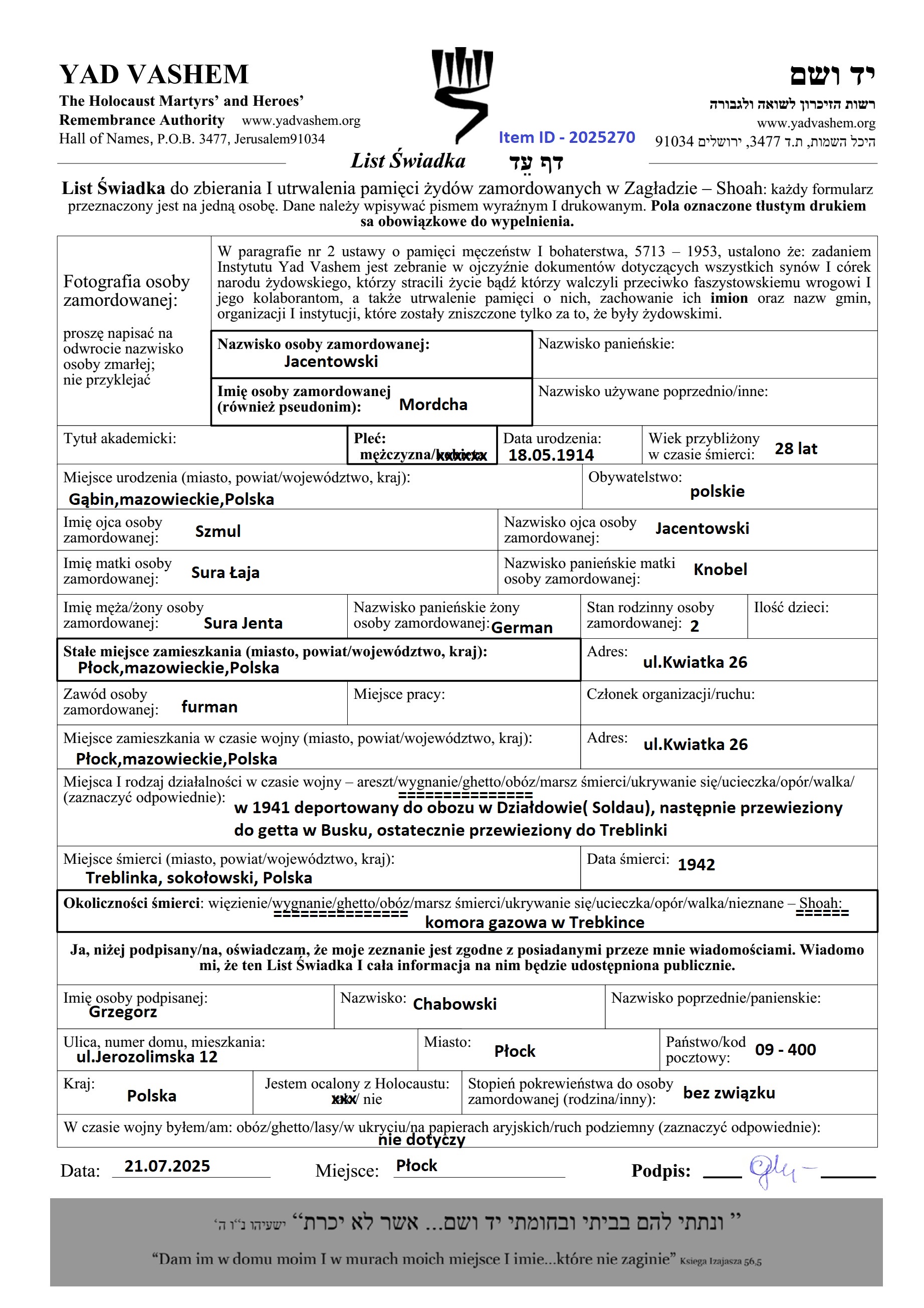 Search by last name of the submitter of the Page of Testimony, including diminutives or nicknames