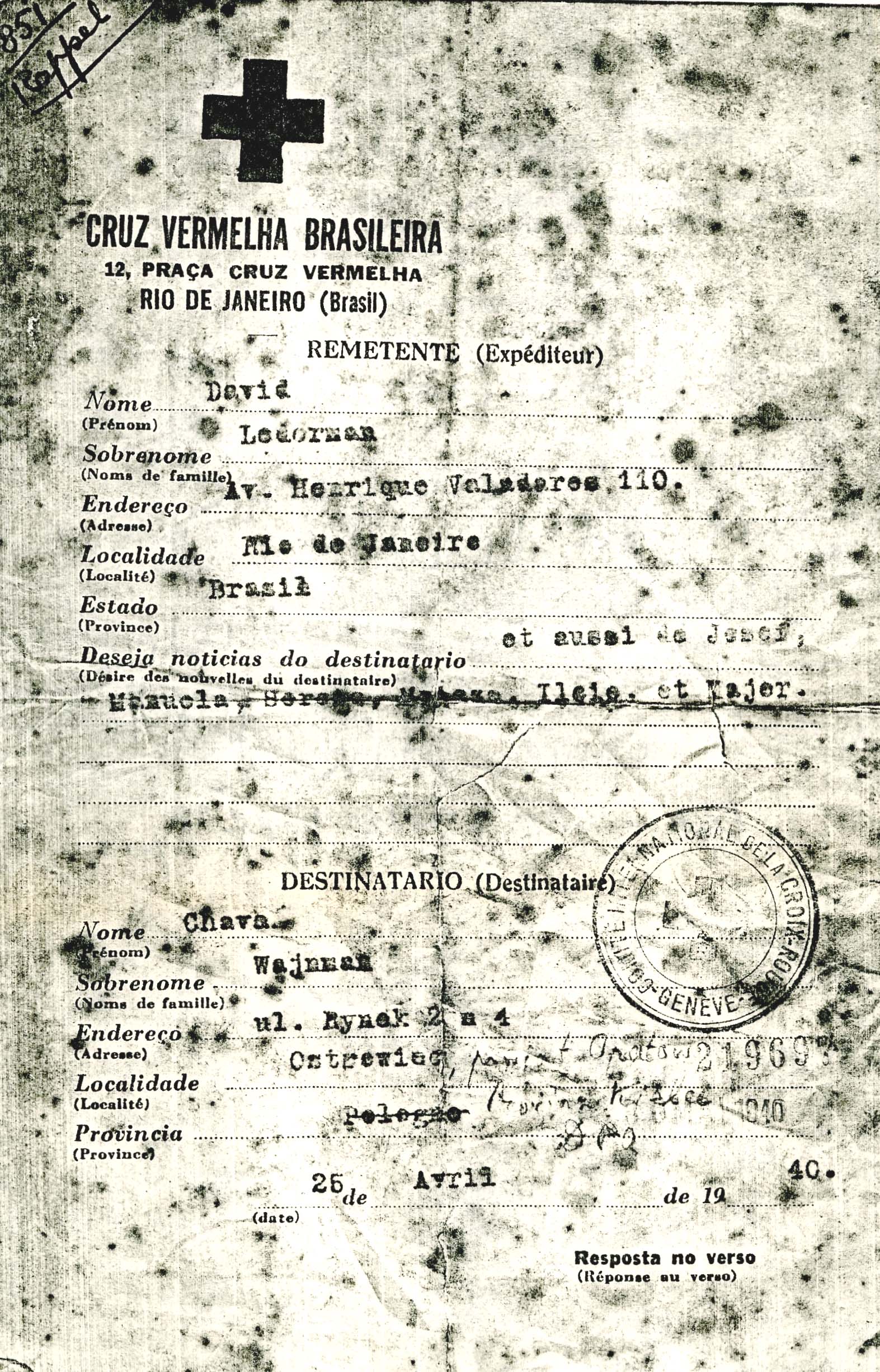 Wajnman Chava Ostrowiec, Poland Red Cross letter